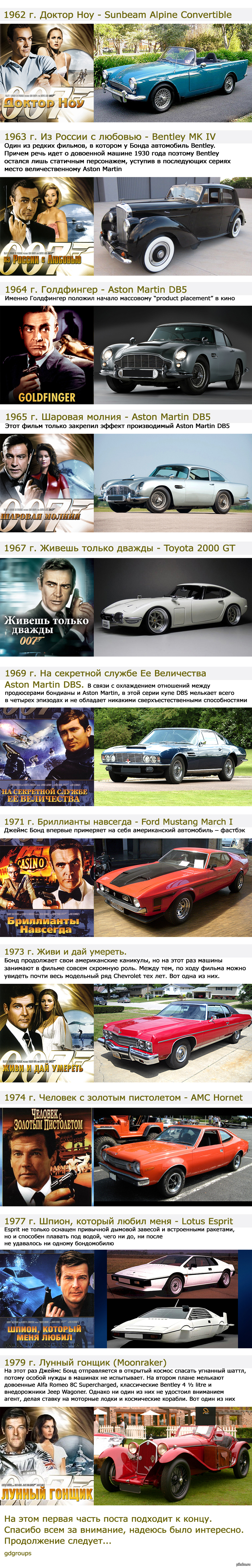 61 gdgroups Транспорт Автомобили Джеймса Бонда. Часть 1. 1962-1979 гг. 11 лет назад [моё] Длиннопост Фотография Авто Фильмы Интересное Моё
