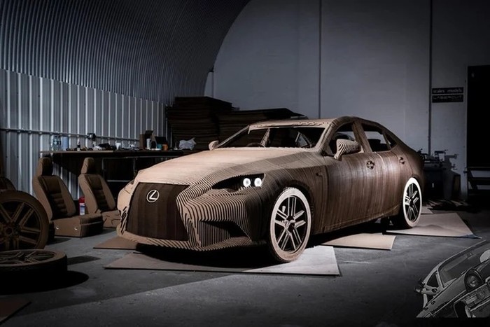 В 2015 году мир буквально шокировала фирма Lexus, выпустившая картонный(!) седан IS. Над созданием этой необычной машины в течение трех месяцев трудились сразу несколько фирм, в числе которых, что неудивительно, был производитель картона DS Smith. С помощью клея на водной основе соединили почти 1700 картонных листов толщиной 10 мм, из которых состоит почти все в этом чудо-автомобиле. Исключение составляет рама из алюминия и стали. Под капотом у картонного Лексуса стоит электродвигатель, так что он действительно способен передвигаться. Правда, предварительно надо проверять прогноз погоды на отсутствие дождя!
