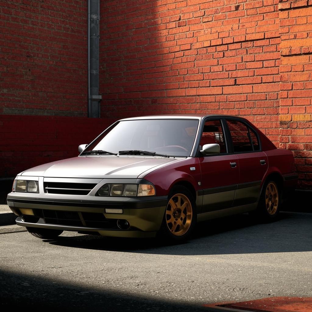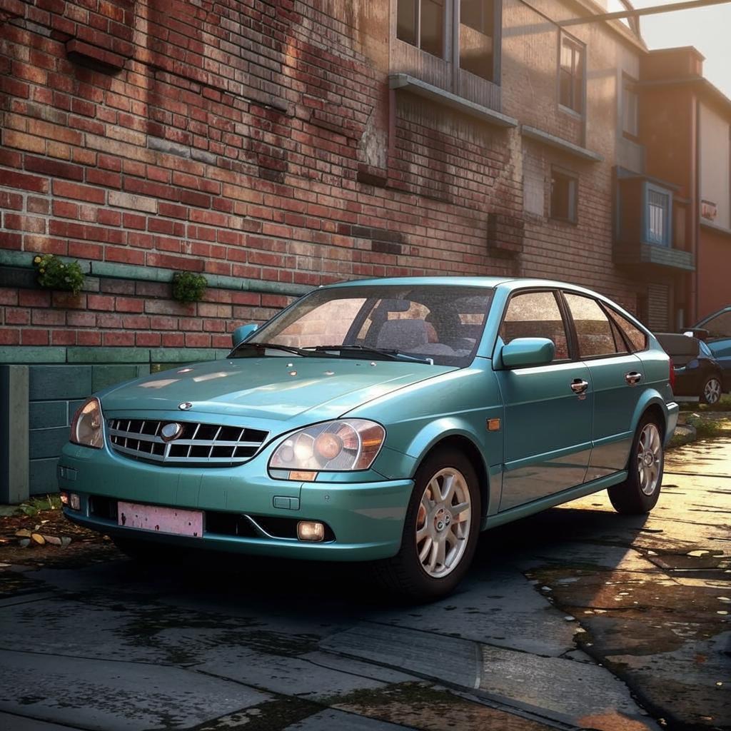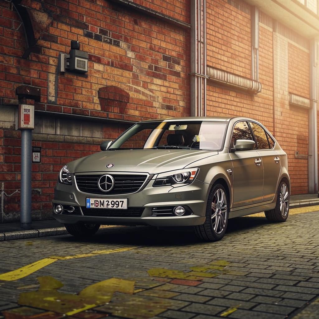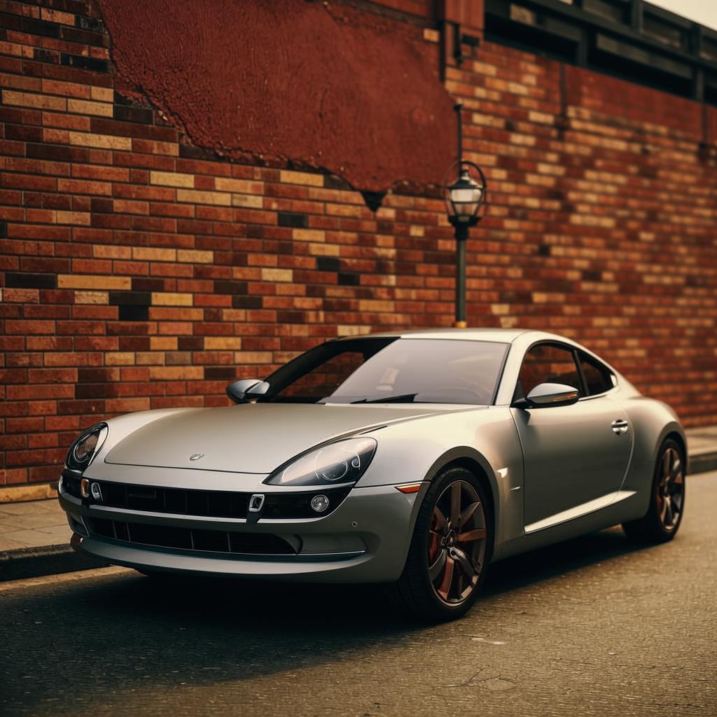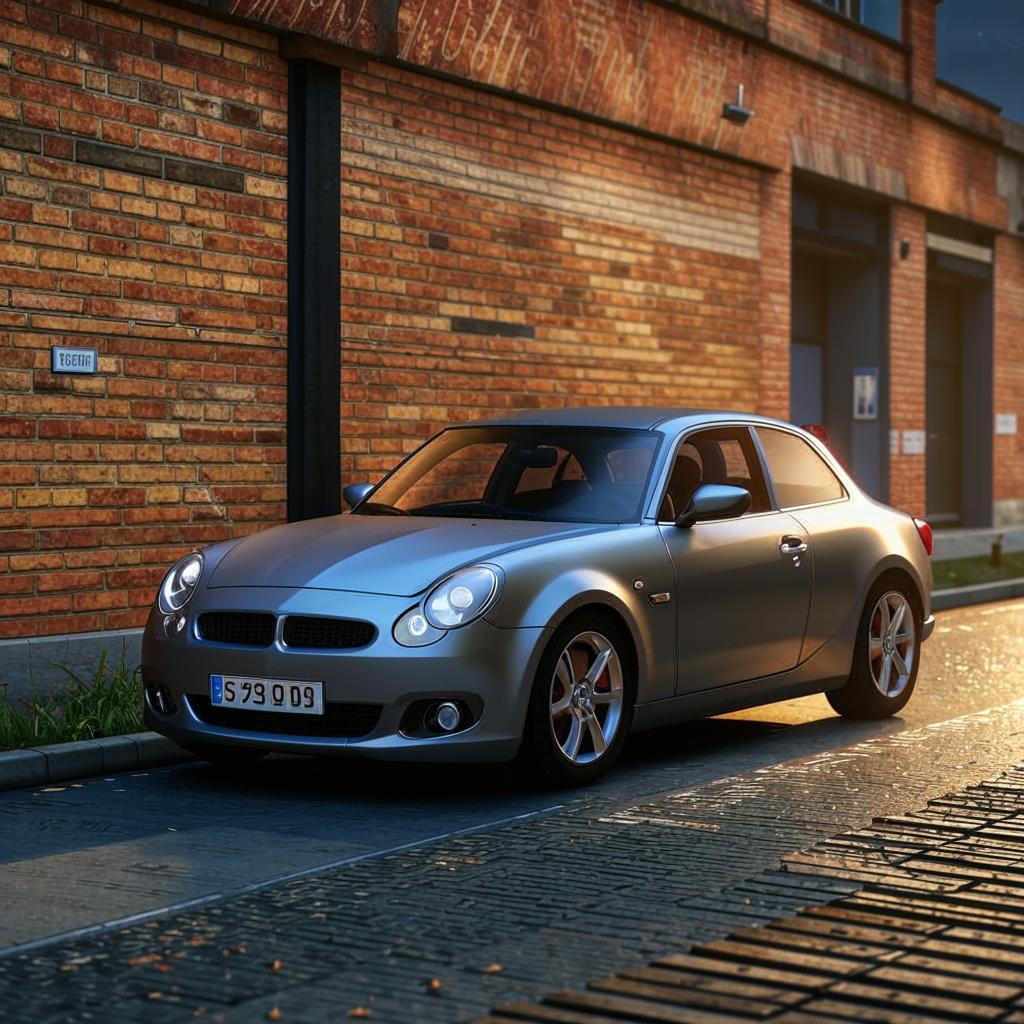 Запрос в ИИ выглядел примерно так "Нарисуй английский автомобиль выпущенный в период с 2000 до 2010 года. Пусть он будет собирательным образом автомобилей которые производились в Англии в те годы. Автомобиль стоит на асфальте. На фоне кирпичная стена"