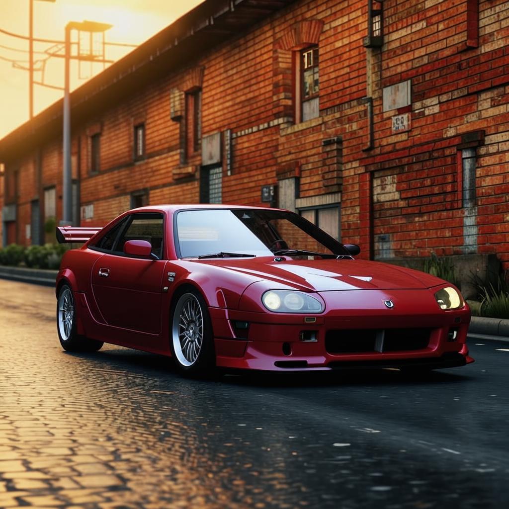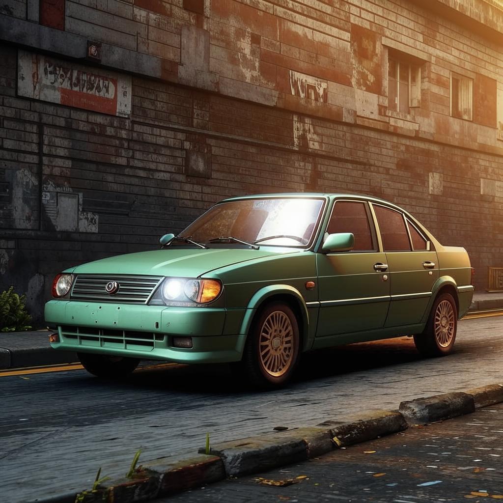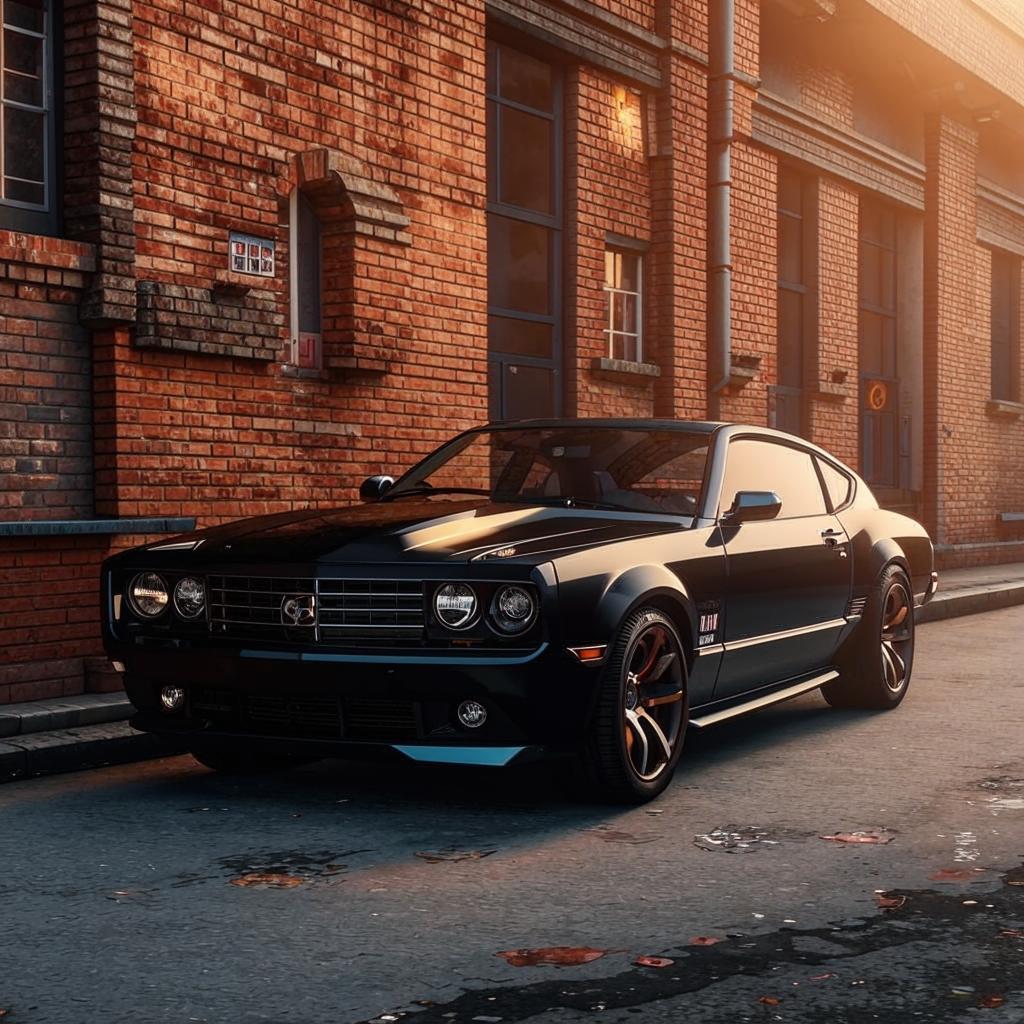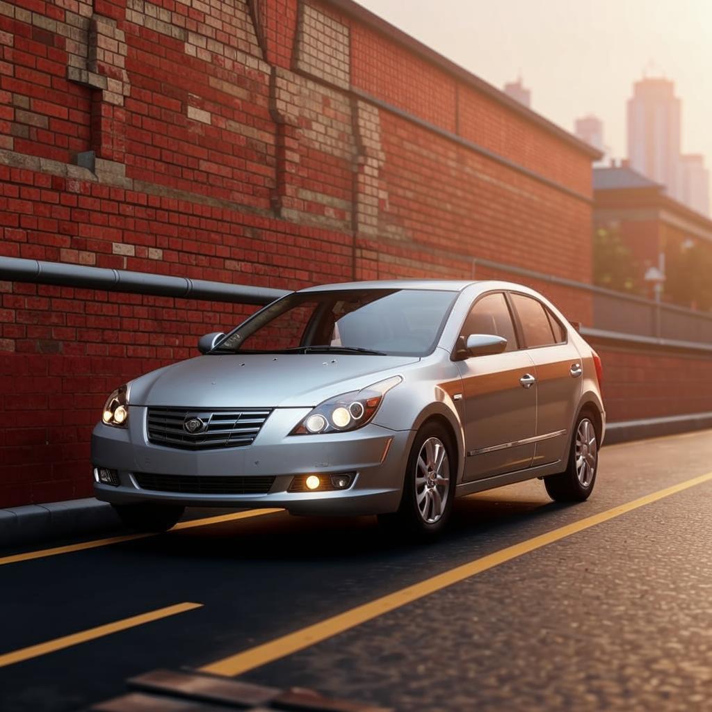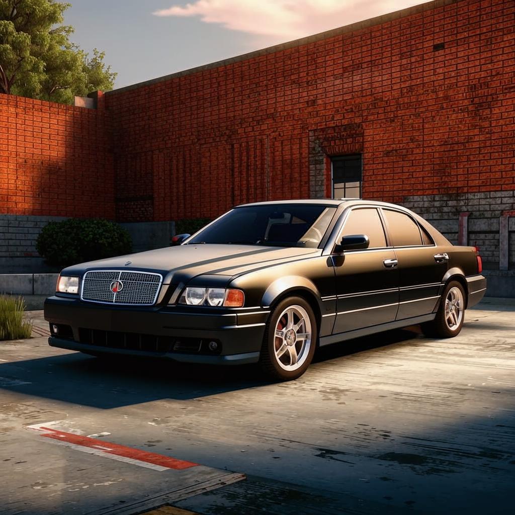 Запрос в ИИ выглядел примерно так "Нарисуй английский автомобиль выпущенный в период с 2000 до 2010 года. Пусть он будет собирательным образом автомобилей которые производились в Англии в те годы. Автомобиль стоит на асфальте. На фоне кирпичная стена"