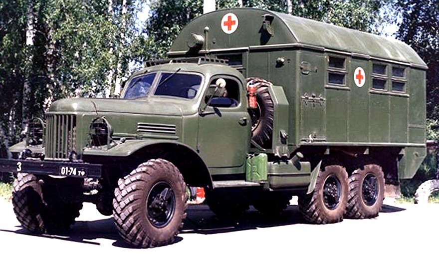 На этом легендарном грузовике было создано только две однотипных санитарных машины общего назначения с повышенной плавностью хода, разными кабинами и кузовами и узкой правой боковой дверью для медперсонала, выпуском которых занимались два предприятия.
