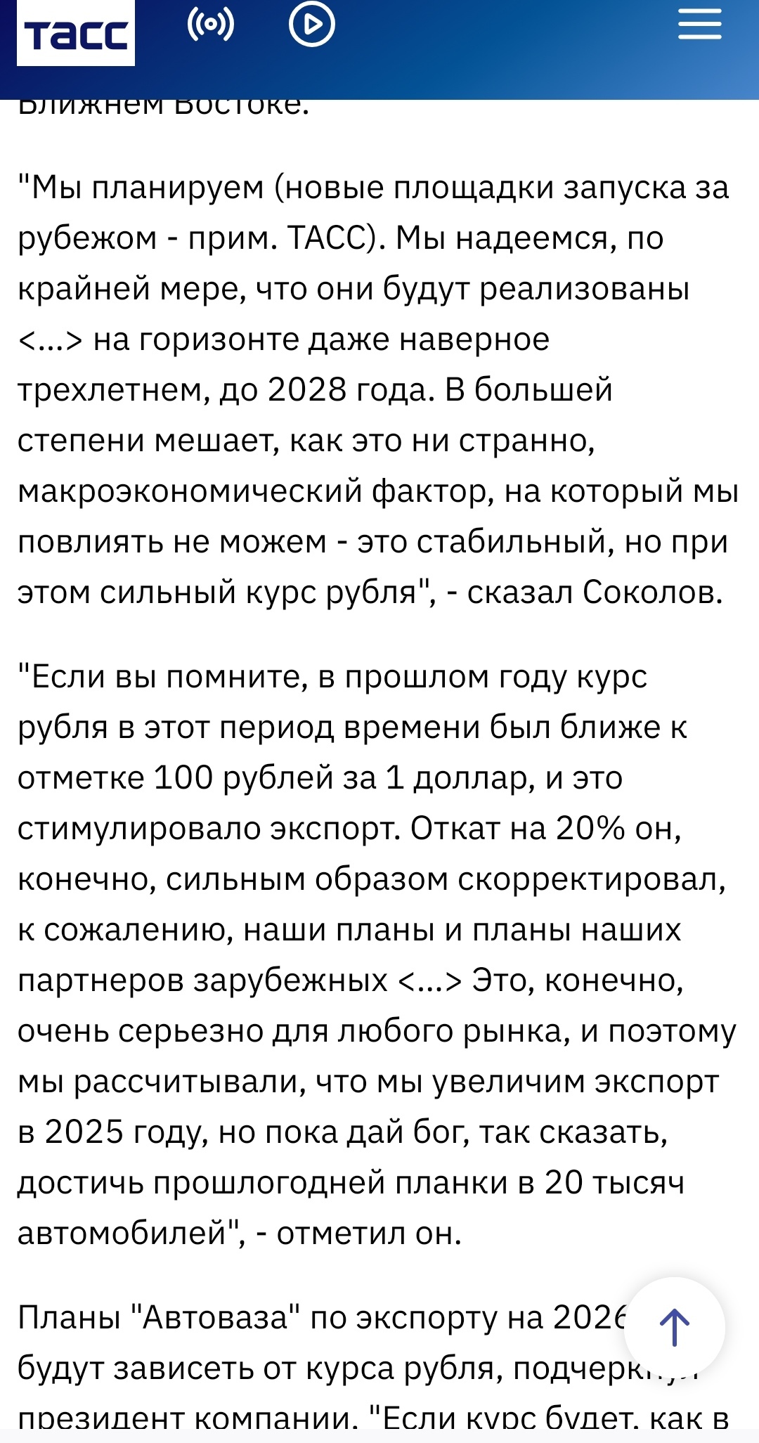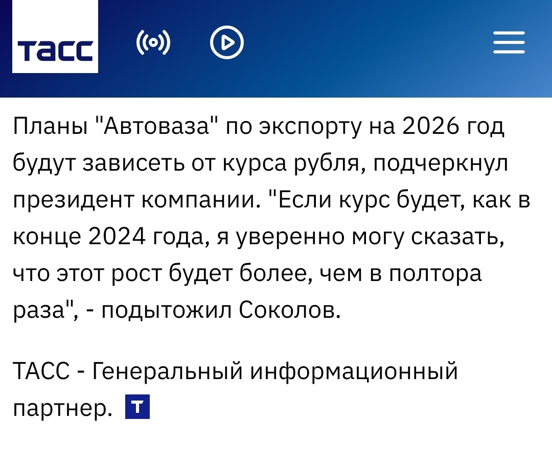 4 SuperSKUF АвтоВАЗ, планы в продаж за рубежом будет зависеть от курса рубля! 6 часов назад АвтоВАЗ Максим Соколов Длиннопост 1 Ещё 0