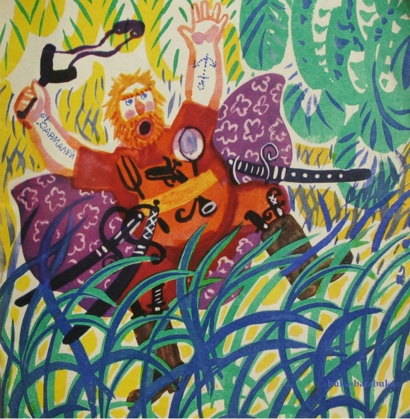 Эти две ипостаси - дикарь и пират - и будут основными амплуа Бармалея. Поэтому всех иллюстраторов можно разделить на две партии - "дикаристы" и "флибустьеристы".