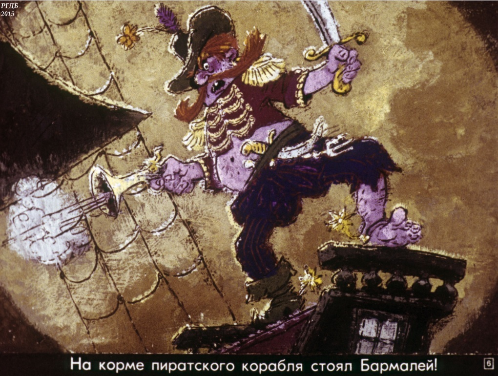И опять Степанцев, но уже в дуэте со своим постоянным соавтором Анатолием Савченко в диафильме 1980 года "Пента и морские пираты".