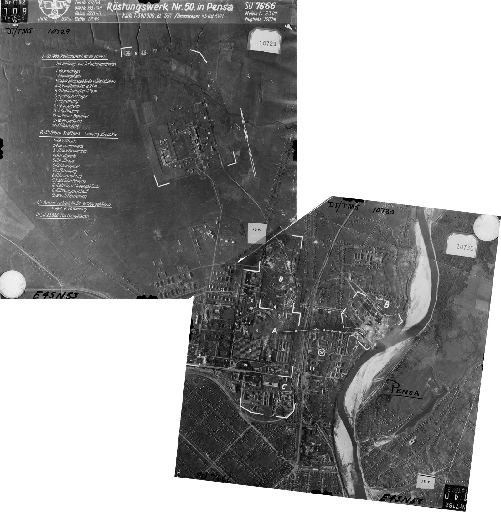 Завод «Эра» тогда собирал самолёты, которые в разобранном виде поставляли к нам (в Пензу) по ленд-лизу через Мурманск. Но на фото завод подписан как «скорее всего хранилище запасов» (по всей видимости, продовольственных). А территория завода «Пензмаш» обозначена как «территория авиазавода», хотя на этом месте уже в 1941-м году располагался завод текстильного машиностроения, эвакуированный из Харькова.