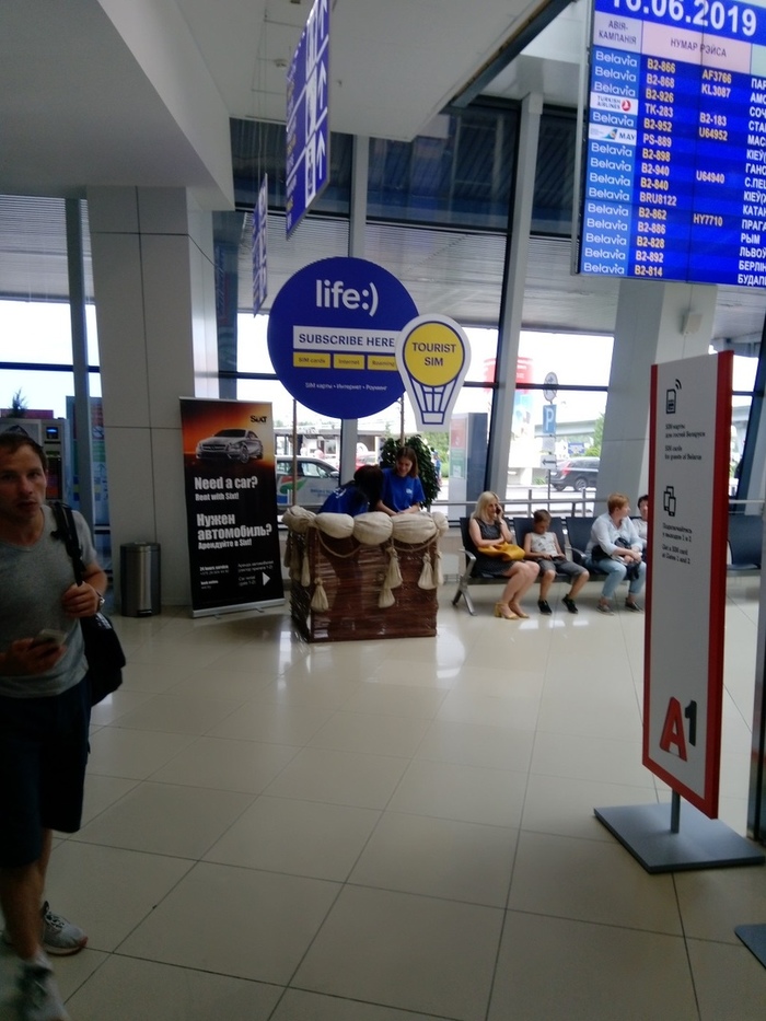 Для гостей Минска прямо на выходе из аэропорта продают туристические сим-карты. Стоимость и тарифы не узнавал, но уже неплох сам факт их наличия. Порадовало оформление точки в виде воздушного шара.