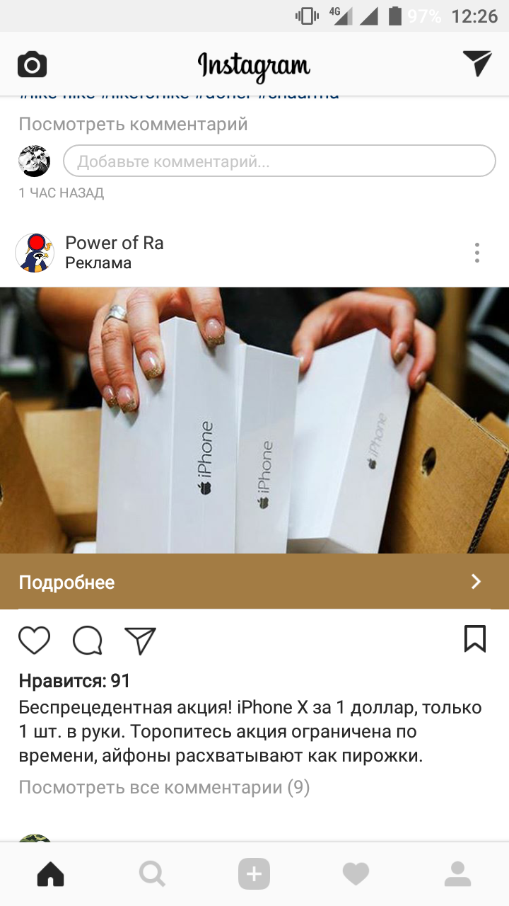 Так что дорогие мои пикабушники! Не ведитесь на такую рекламу "лохотронов" Меня до сих пор не перестаёт удивлять тот факт что Instagram не проверяет ту рекламу что у него покупают! Всем удачи и добра)