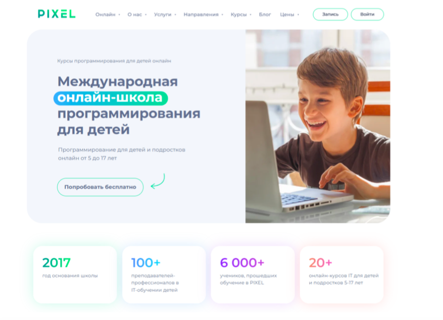 Направления: онлайн-школа Pixel предлагает ребятам программирование, разработку игр, создание сайтов, а также такие направления, как цифровое творчество, графический дизайн и компьютерная грамотность.