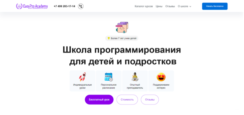 Цены: айти-школа для детей онлайн предлагает курсы и образовательные траектории. Цена урока в рамках первых составляет от 800 рублей, один час в случае со вторыми стоит минимум 600.