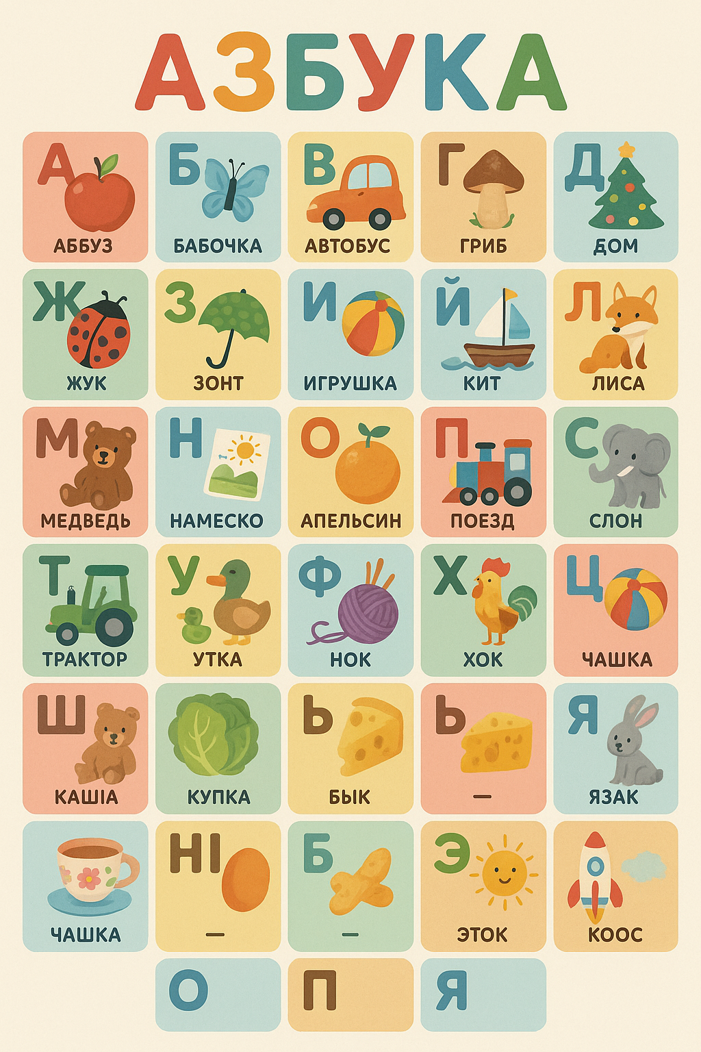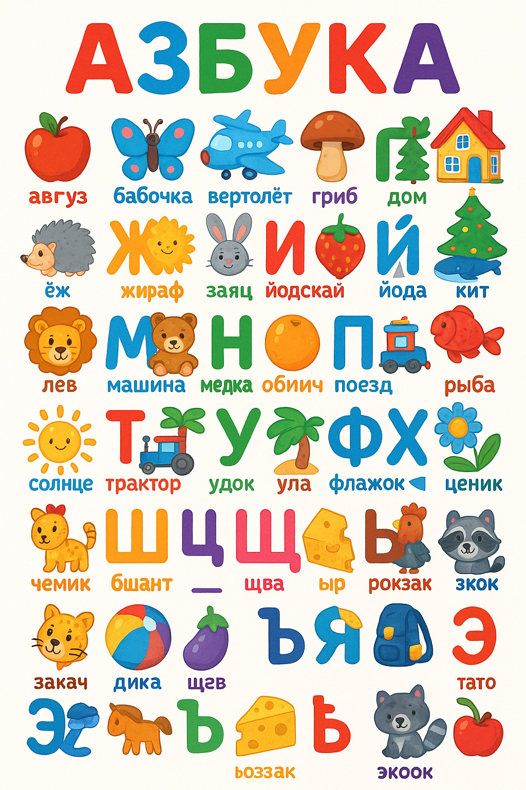 Промпт для GPT4 Plus: "Создай картинку - полная азбука для малышей"