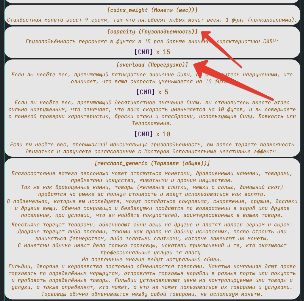 Когда жадность губит героя, или вот где начинаются настоящие проблемы: в D&D 5e есть дополнительное (вариативное) правило, которое Мастера могут использовать, чтобы наказать тебя за жадность: для этого ввели перегрузку и сильную перегрузку, вот как она, например, рассчитывается у нас в приложении в зависимости от характеристики Силы: