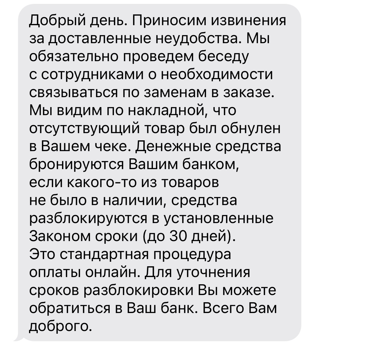 Я сообщил, что операция в банке проходит, как выполненная и сумма уже не изменится.