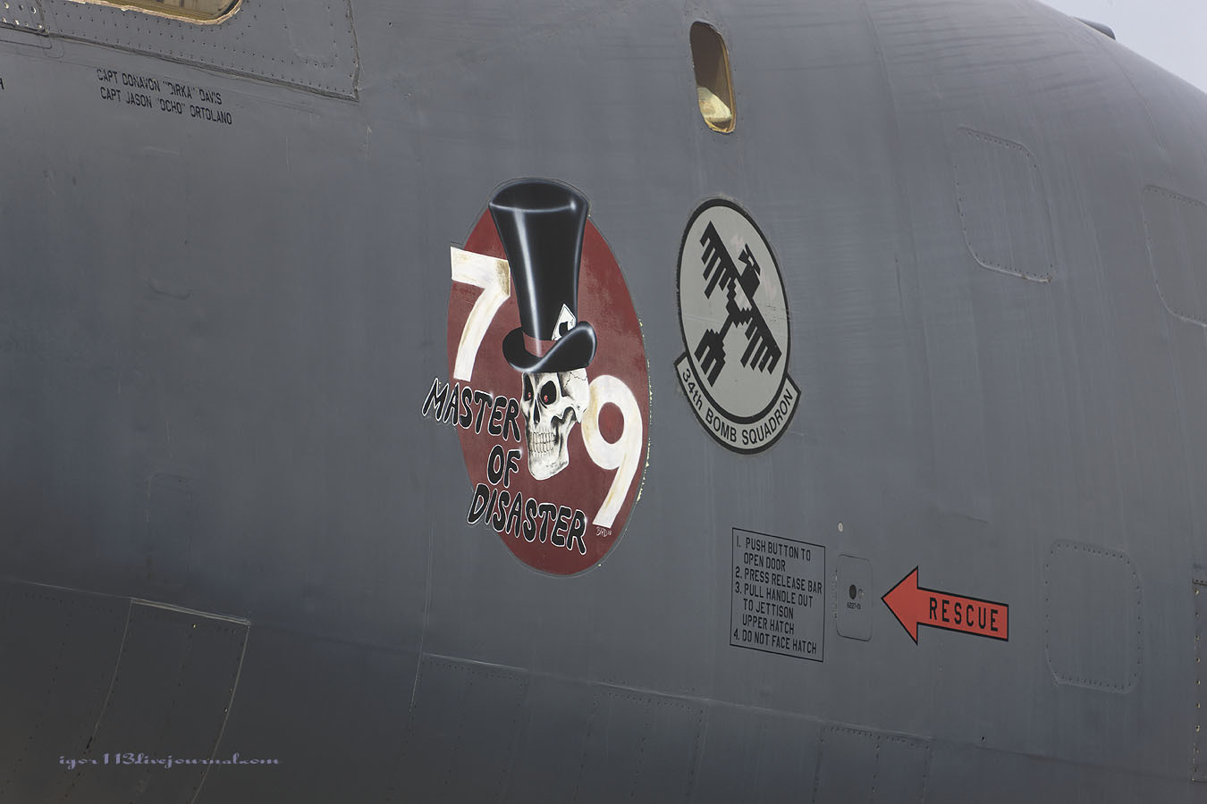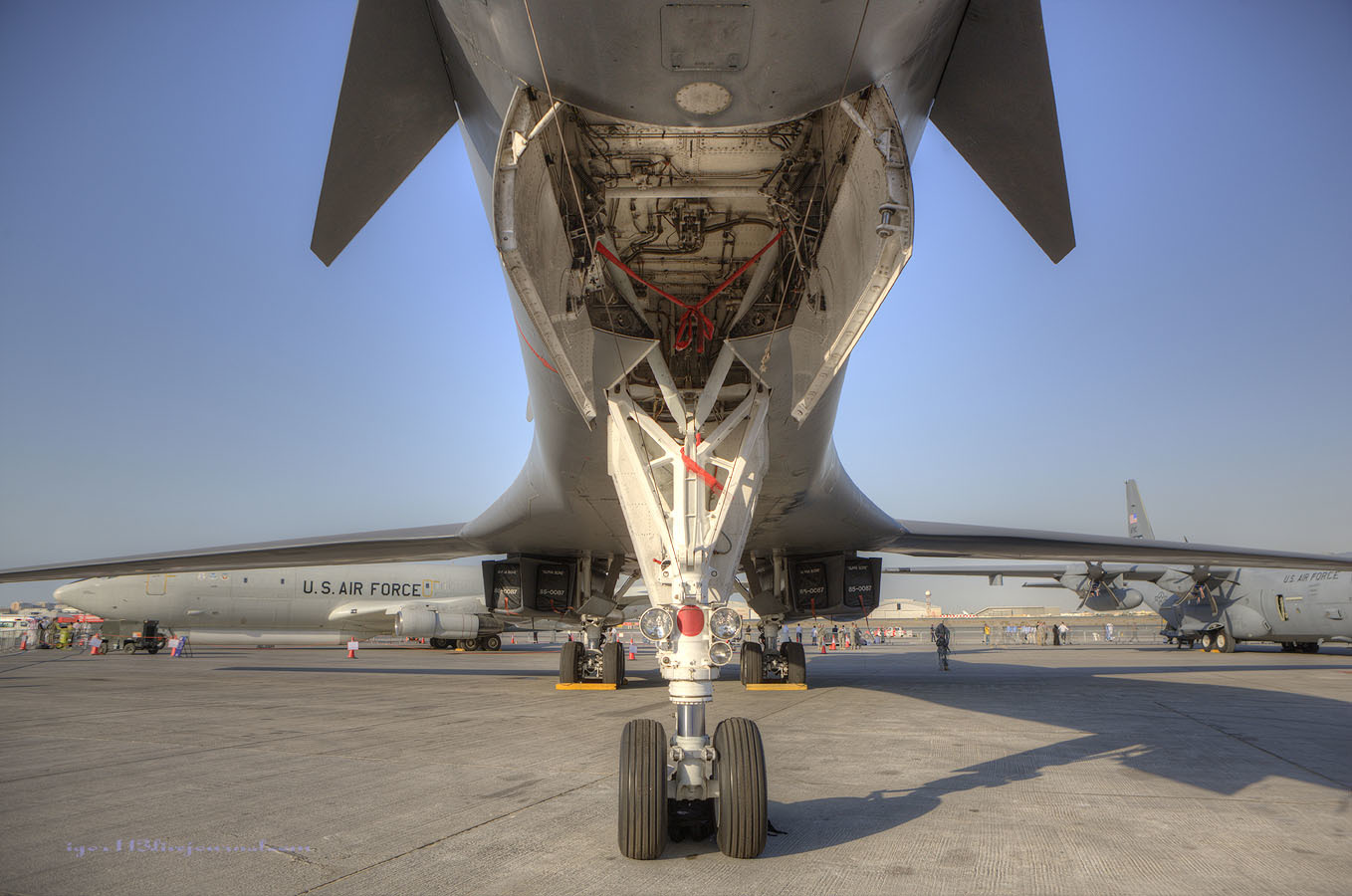 Вооружение. В-1В имеет передний и средний отсеки вооружения, объединенные в один сдвоенный отсек длиной 9,53 м с переставной перегородкой, и задний отсек длиной 5,57 м. Бомбовое вооружение включает в настоящее время свободнопадающие бомбы Mk.82 (225 кг) на кассетных держателях CWM. Типовой состав вооружения - 56 бомб Mk.82 в среднем и заднем грузоотсеках и съемный бак с 9 600 кг топлива в переднем грузоотсеке.