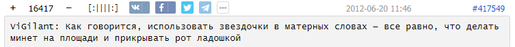 -закрывать мат одной звёздочкой - все равно что сосать член по среди площади, прикрываясь ладошкой