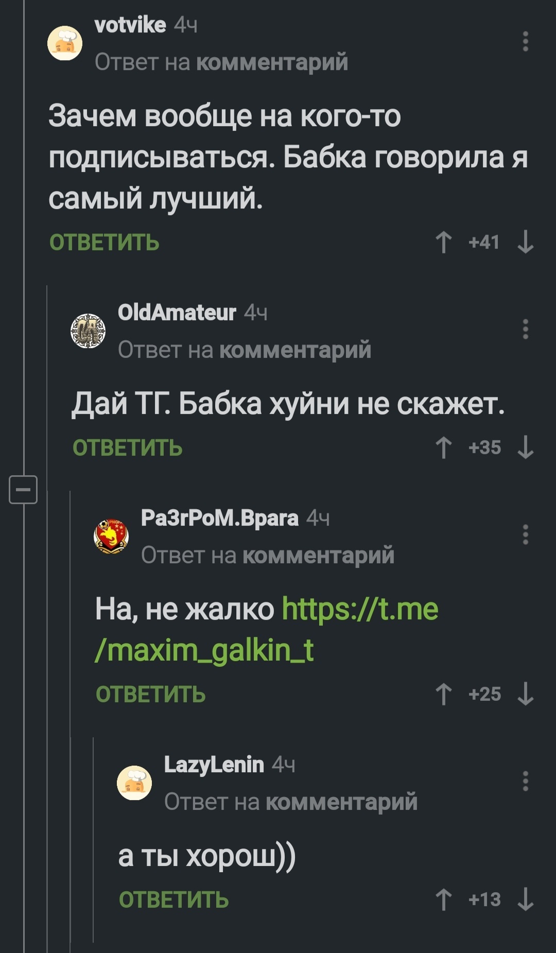 383 Pipka88 Бабка фини не скажет 3 года назад #comment_229960399 Совет Бабка Комментарии Мат Скриншот Комментарии на Пикабу 3 Ещё 0