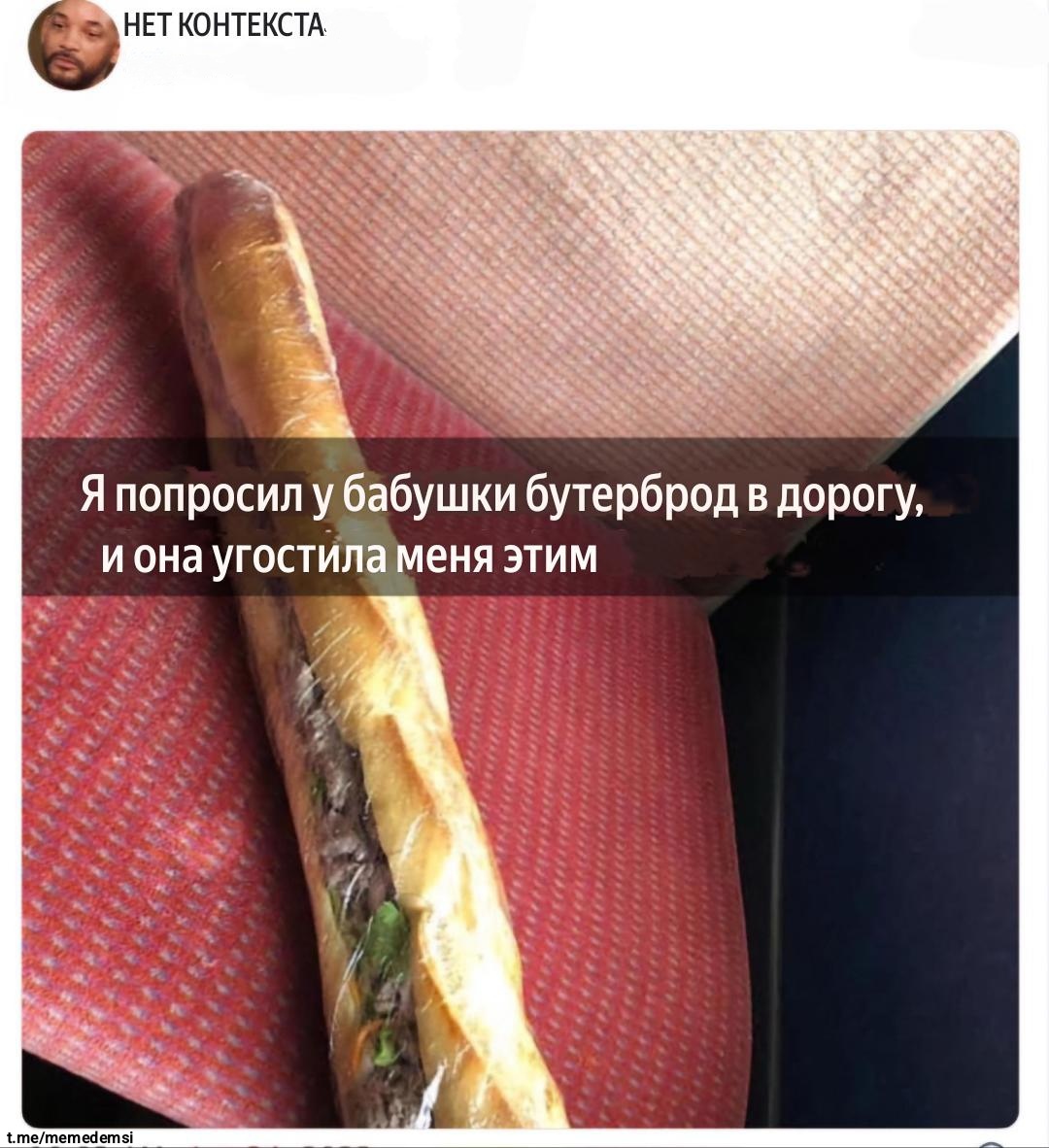 22 kinosmotr Юмор Бабушка) 10 месяцев назад Канал MeMeDemsi Мемы Картинка с текстом Юмор Бабушка Еда Бутерброд Батон Telegram (ссылка) 2 1 1 Ещё 0