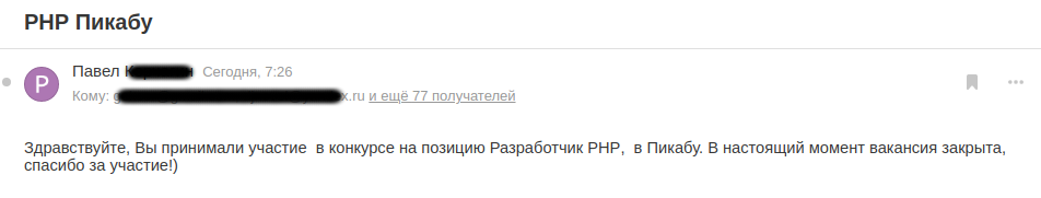 Ну закрыли вакансию и закрыли. Мне с этого ни горячо ни холодно. Хотя постойте, что это у нас в строке "Кому:" ?