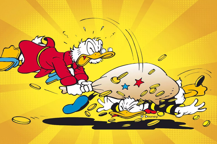 Гейзер золотых евродолларов ударил из тайника в стене, обрушив на головы, плечи и спины детей гремящие потоки звонких монеток. Сверкающая струя иссякла через пару секунд. Ошеломлённые, они смотрели на золотые сугробы, вмиг выросшие на каменном полу.»