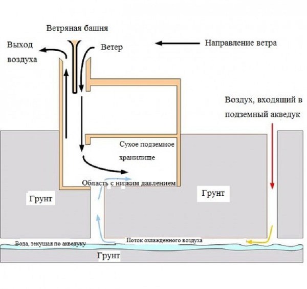 так а каким образом горячий воздух их пустыни охлаждает воду почти до температуры замерзания? не наоборот ли эта хрень работает - протягивает воздух через подземные резервуары с холодной водой, а потом этим воздухом охлаждает здание?