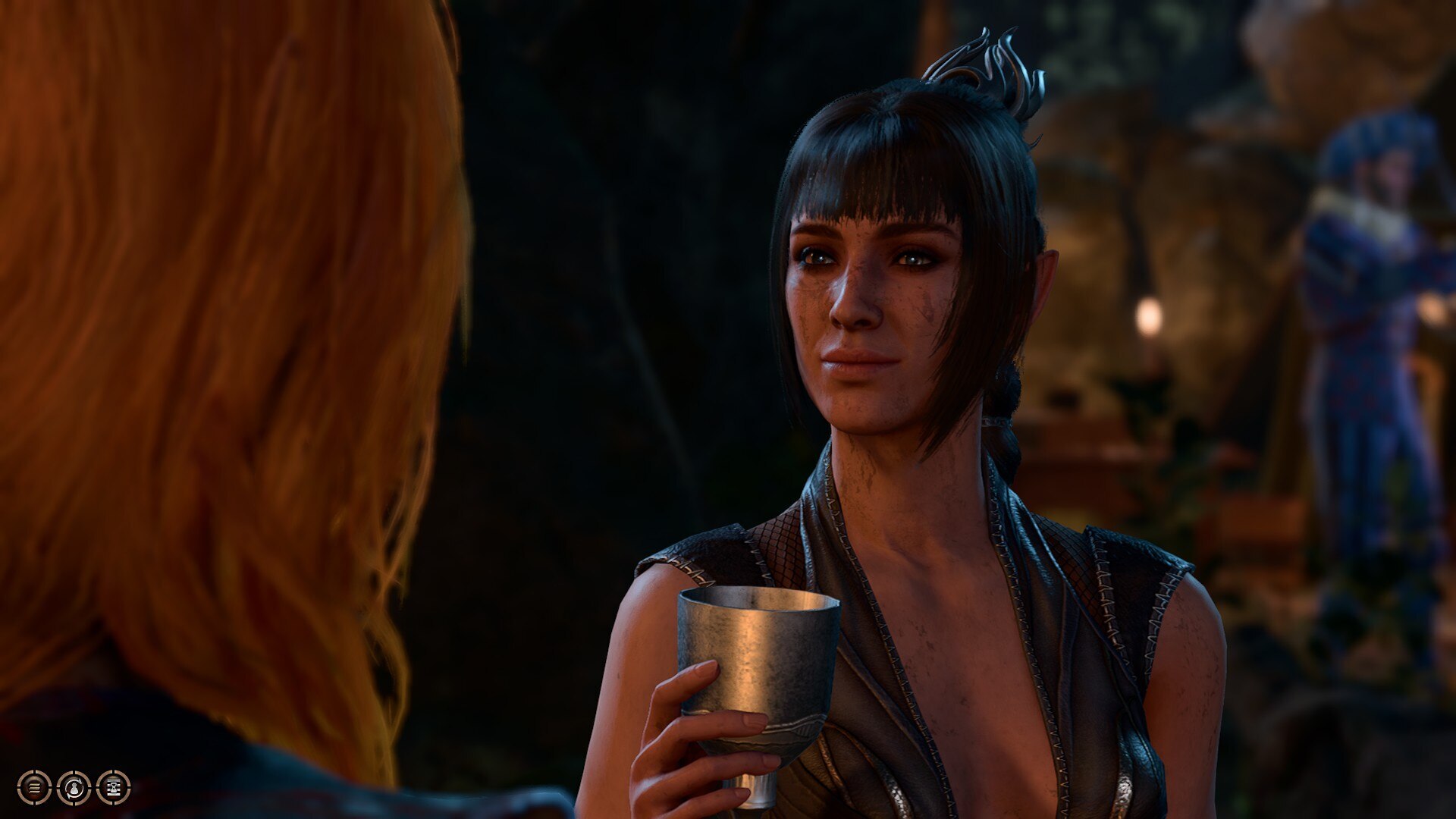 Очень кринжово выглядел разговор с тифлингом Альфирой, которая сидит в роще, играет на лютне и пытается сочинять песню. Вдохновение ей не прёт и я решаю помочь. Дважды прошел проверку навыков, чтобы сначала подыграть ей на инструменте а потом "спеть с ней в унисон", так и написано было. Мой перс пел с ней в унисон, только молча и с закрытым ртом). И таких случаев много. Это все смотрится диковато, учитывая что вы на этапе создания персонажа выбирали голос, да и во время беготни по карте ваш перс довольно часто что-то говорит, комментирует готовыми репликами, но как только начинается диалог - тишина.