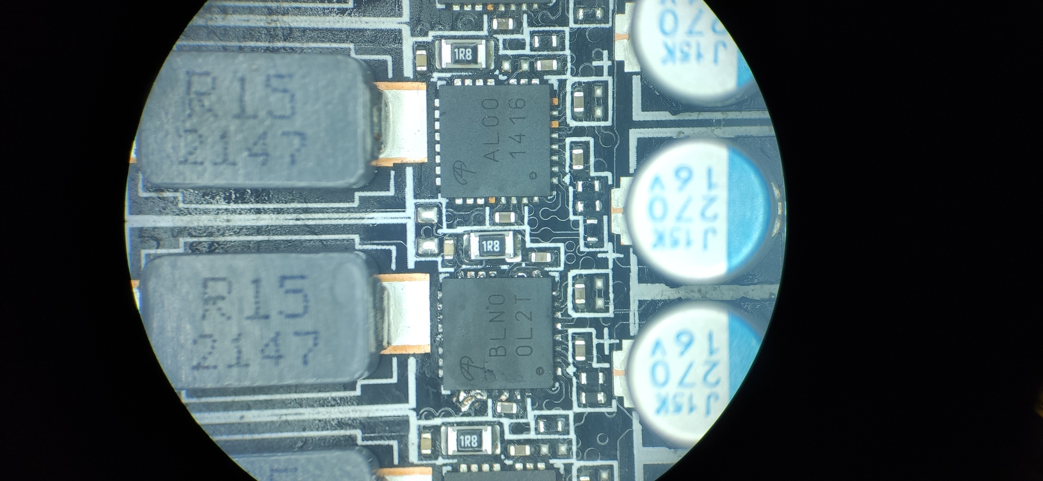 Увы, DrMOS прикипел к плате намертво и пришлось его выпиливать.