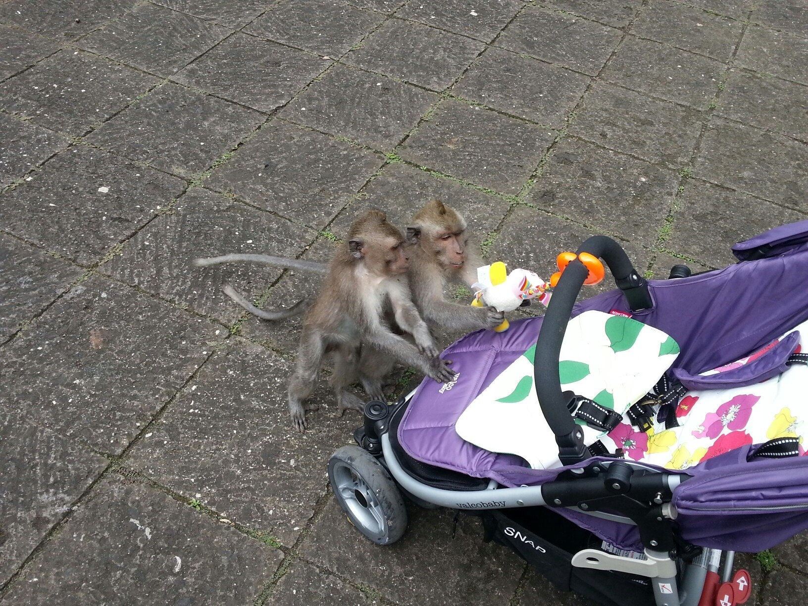 Канадские ученые подробно описали систему бартерного обмена в храме Улувату: обитающие там макаки-крабоеды (Macaca fascicularis) часто воруют личные вещи туристов и отдают их обратно только в обмен на еду. Оказалось, что успешно воровать макаки учатся с возрастом, а у украденных вещей есть своя цена: так, молодые и взрослые макаки предпочитают воровать одежду и гаджеты, потому что за них дают больше их любимой еды. Данные о бартере макак ученые получили как в ходе наблюдений на территории храма и в ходе небольшого эксперимента, в котором приняли участие 15 макак. Статья опубликована в журнале Philosophical Transactions of the Royal Society B.