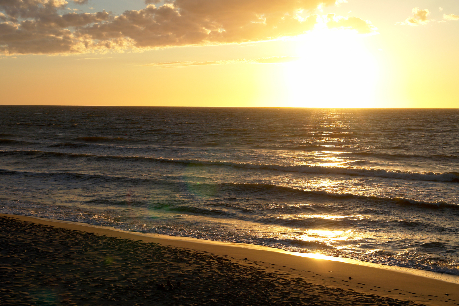 Вот - предзакатное: поспокойнее, завитки волн, как стружка из-под рубанка, ровные, один к одному