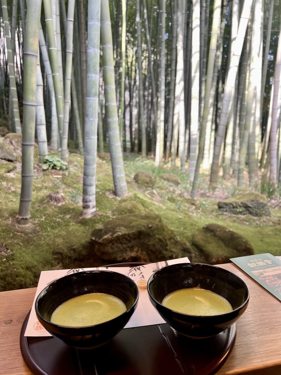 Посреди рощи стоит небольшой чайный домик, где можно восстановить силы, выпив чай маття с японскими сладостями вагаси, любуясь при этом на бамбуковую рощу.