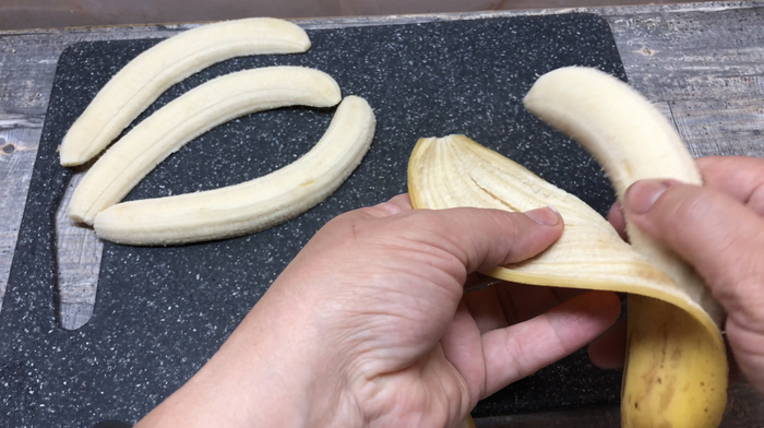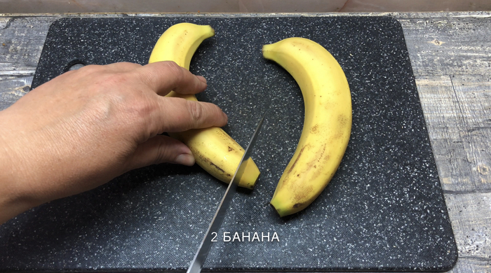 1) Сначала нарежем бананы как показано на видео(весь процесс не получится показать фотками) и очистим их от кожуры