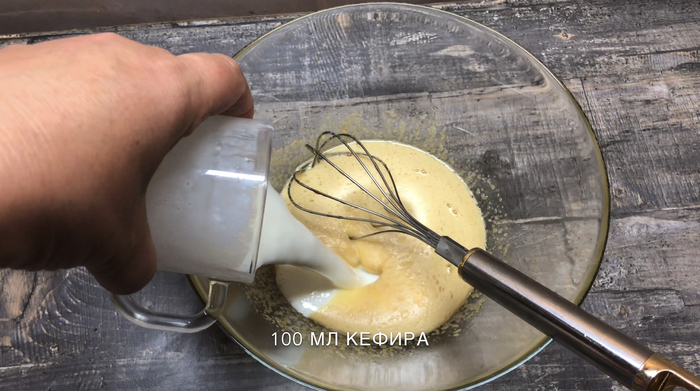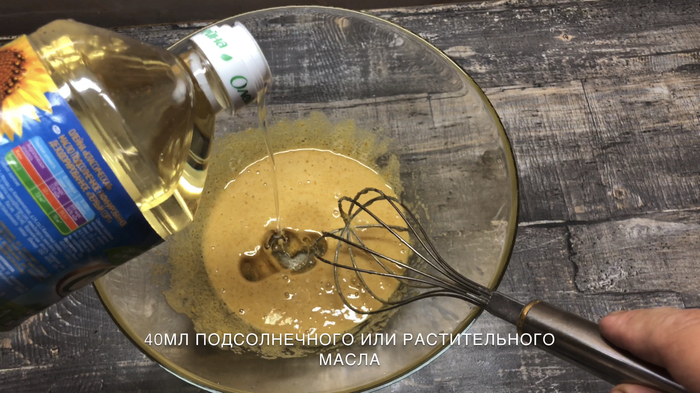6) Добавим 40 мл подсолнечного или растительного масла и 100 мл кефира или йогурта