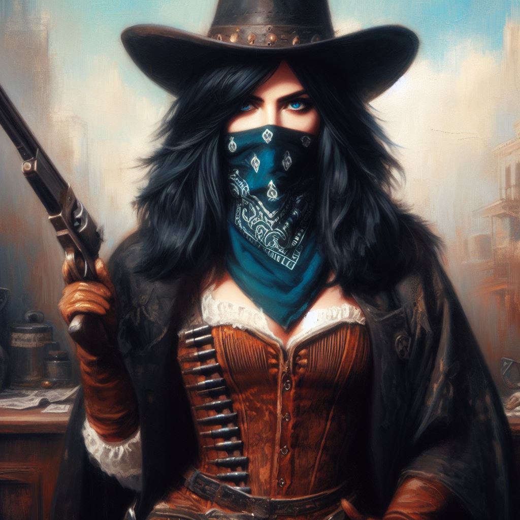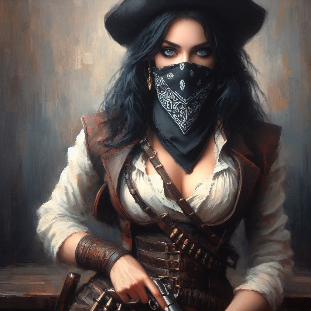 danachaos Бандитка 2 года назад Арты нейросетей Dall-e Иллюстрации Lady Арт Бандиты Дикий Запад Цифровой рисунок Длиннопост Девушки 1 Ещё 0