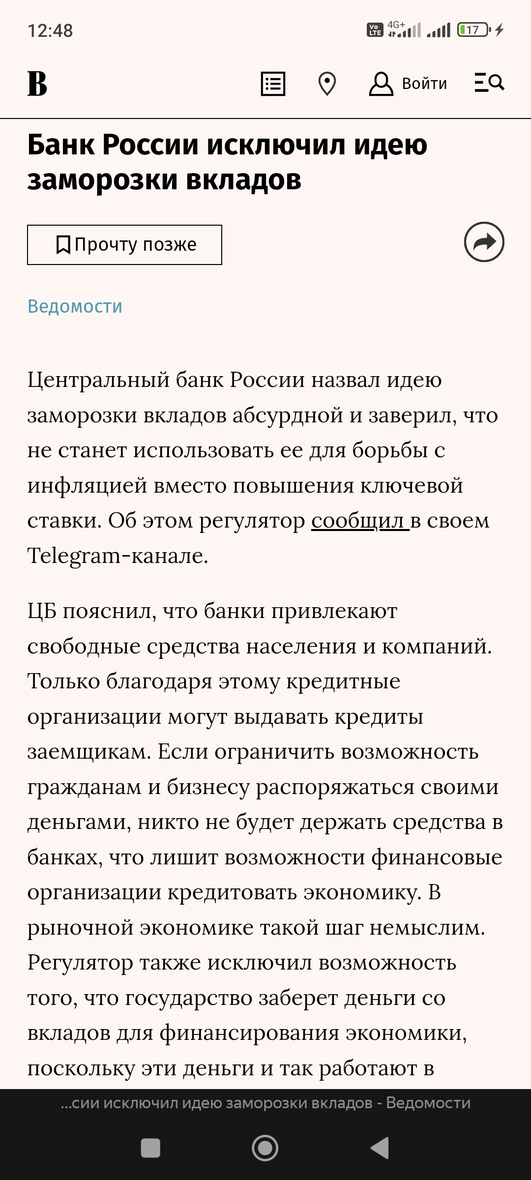 2 Garicspb Банк России и вклады 10 месяцев назад Господа эксперты,не похоже ли на первые звоночки? Деньги Центральный банк РФ Длиннопост 1 1 Ещё 0