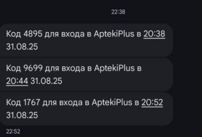 СМС на подтверждение приходят от Аптеки плюс: