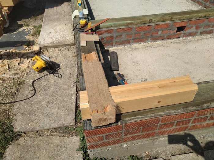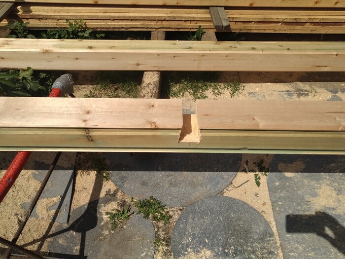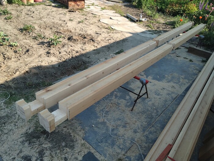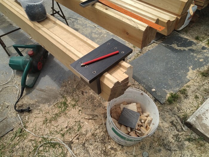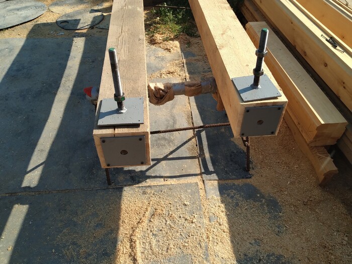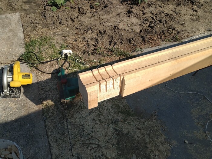 после чего, делайм "разгрузочный" паз по длине (что бы когда брус будет усыхать, не трескался наружу).