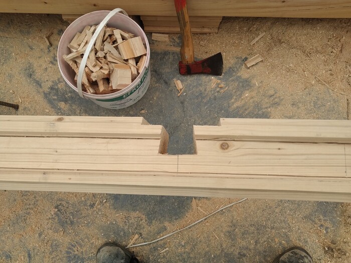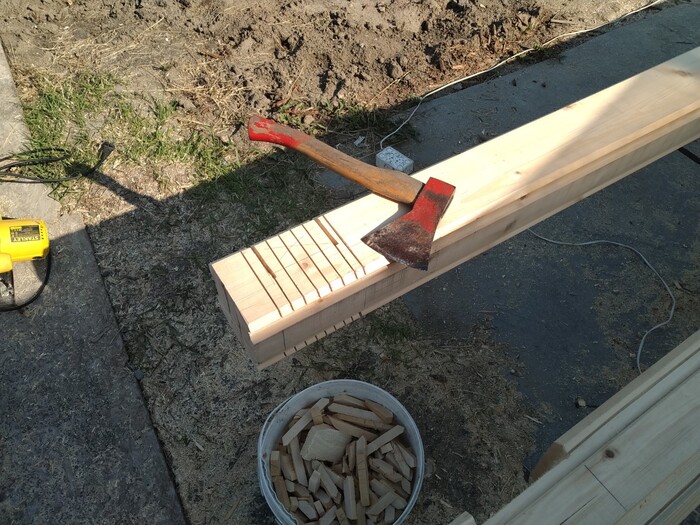 После чего пилим, и выкалываем топором замки.
