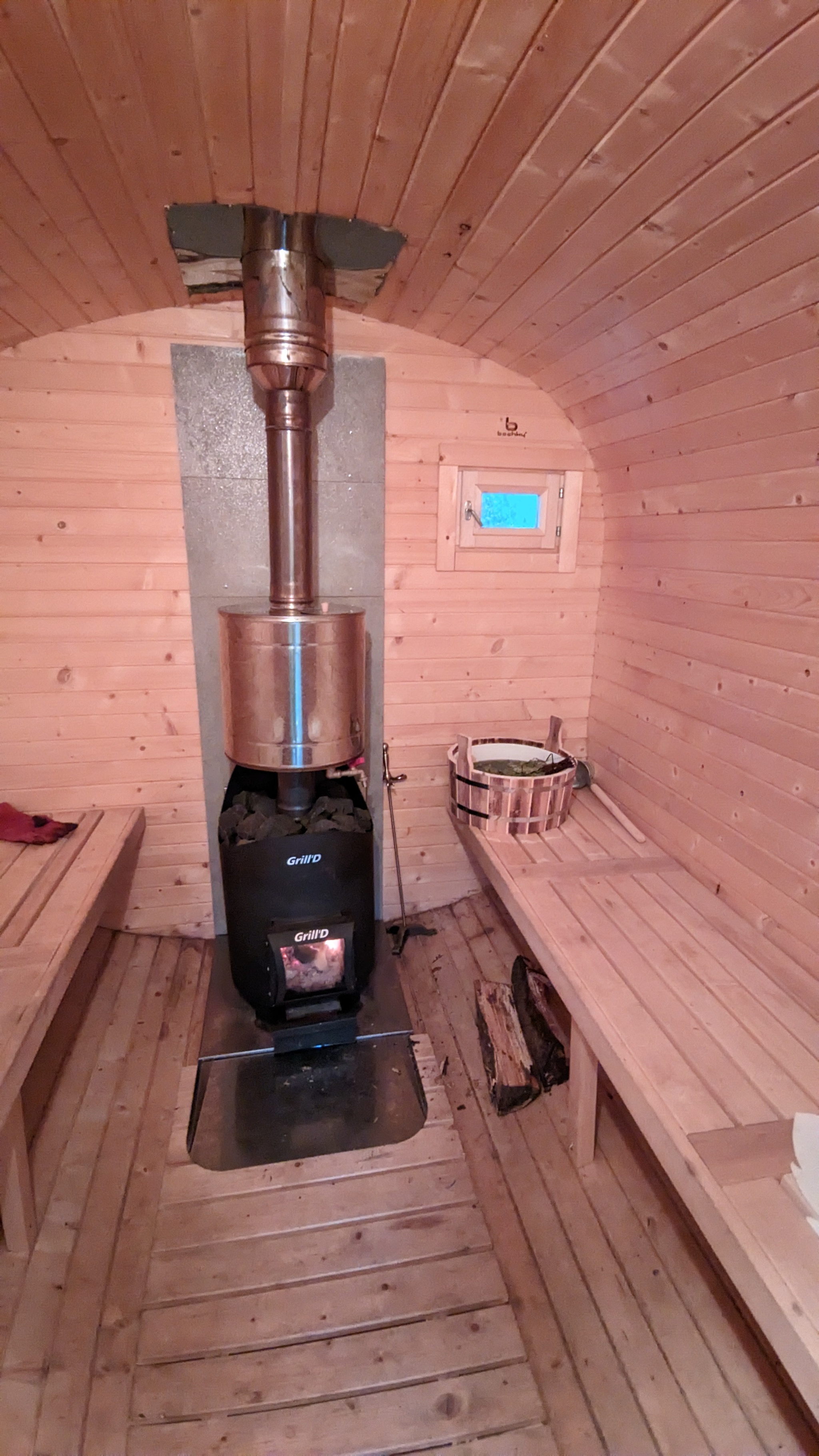 Появилась у нас эта радость в 2020, сидя в изоляции на даче, подумали с мужем- а почему бы и да? Муж проехал по местным стройрынкам, где и нашлась наша прелесть в последнем экземпляре со скидкой. Пока ждали доставку( около двух недель) сделали основание из швеллера. Привезли её в готовом виде, только трубу смонтировали на месте и в этот же день мы пошли париться. По размерам она 2.5*5, есть небольшой предбанник и сама парилка. Нам на двоих идеально. Могут влезть и четверо в принципе, но комфортно двоим.