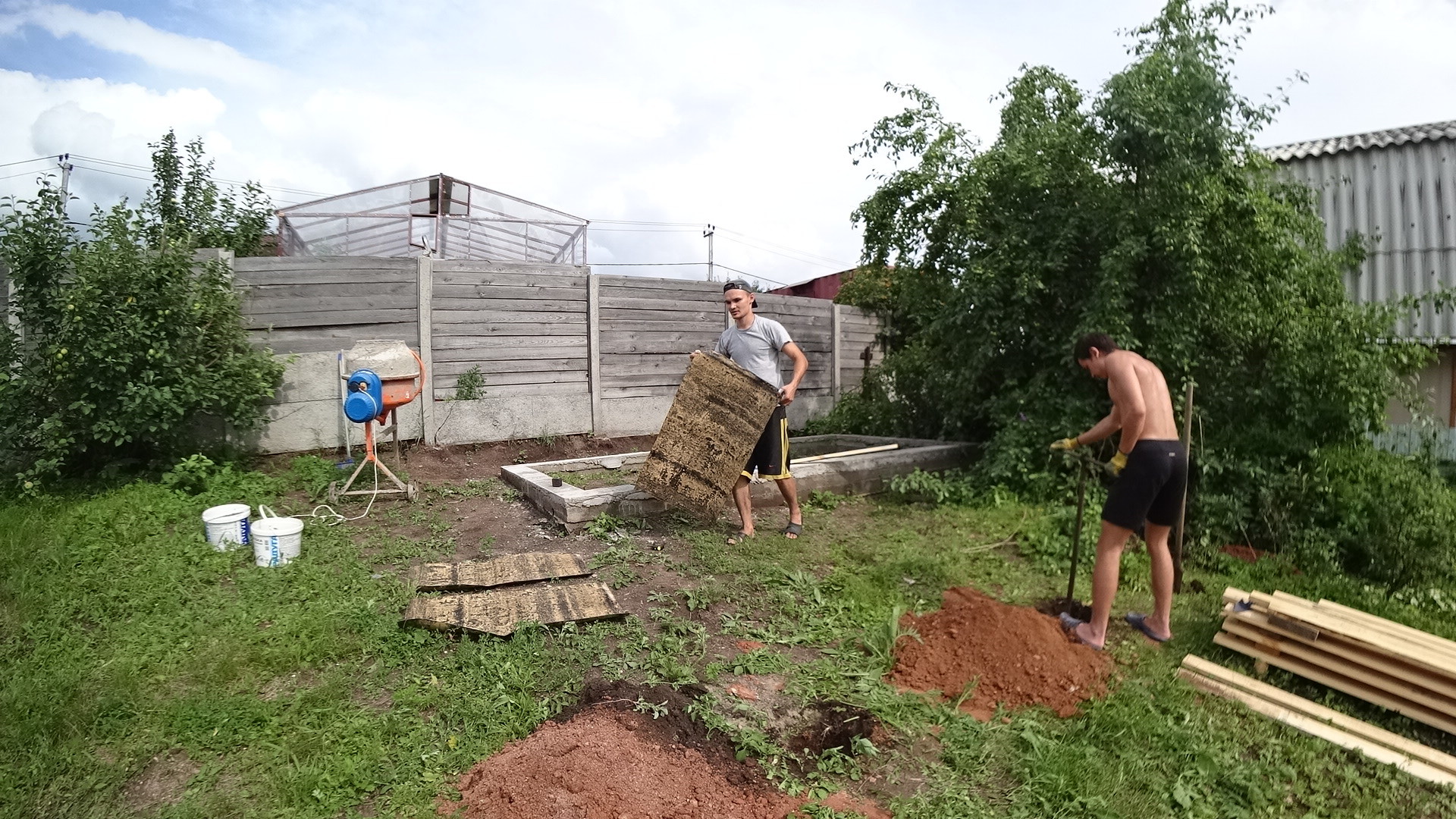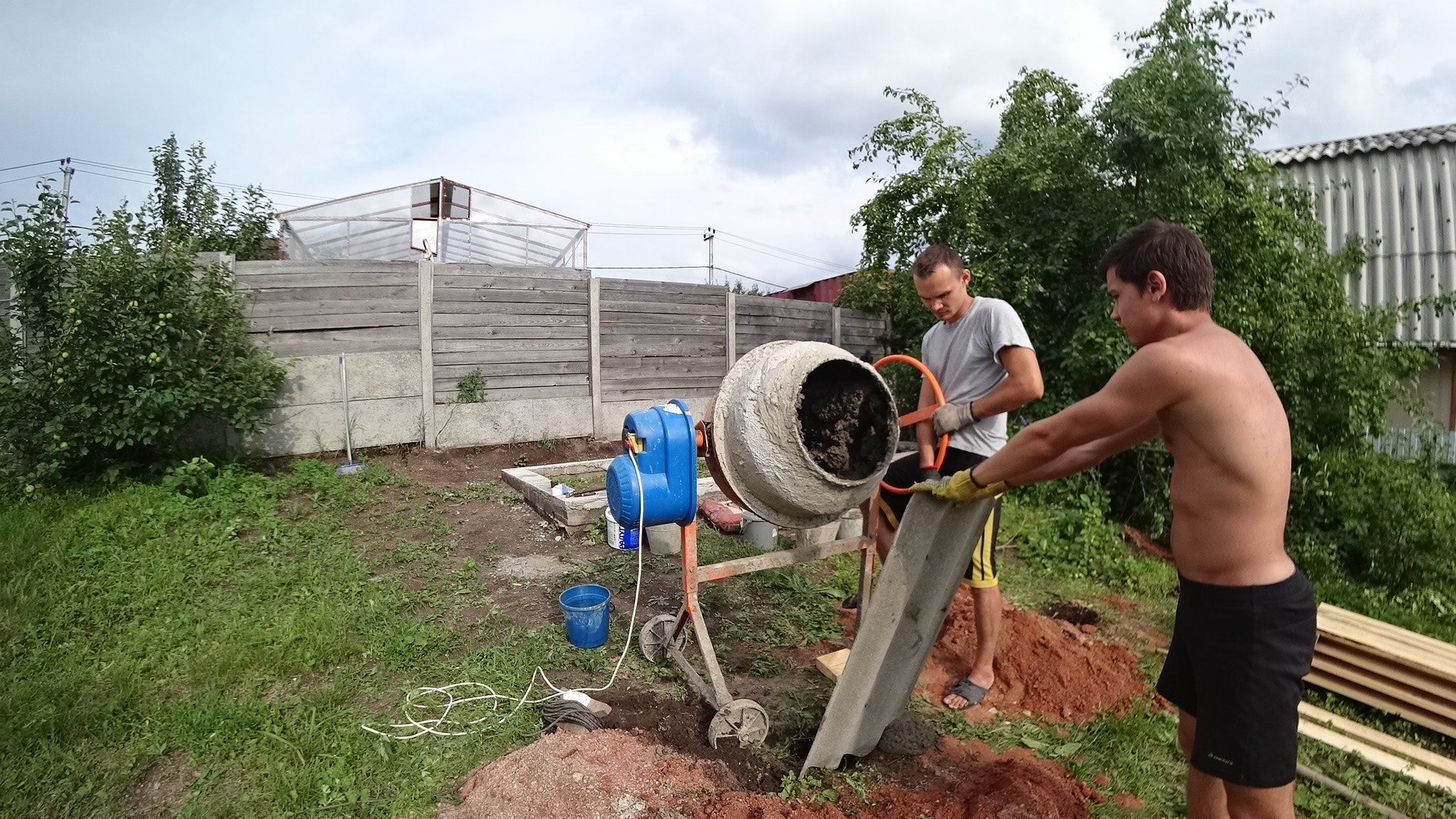Бетонная смесь готовилась самостоятельно.