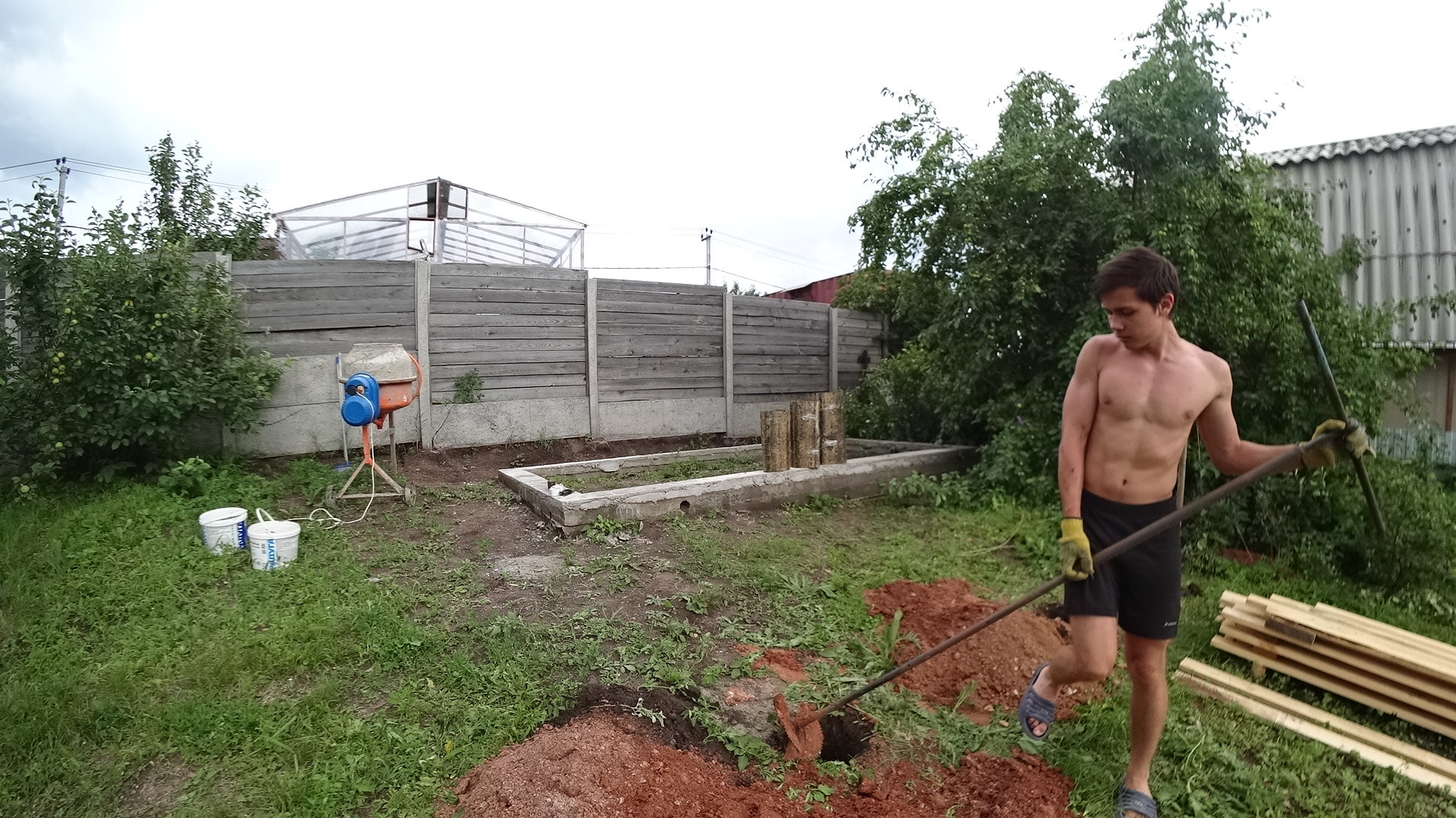 Баня за 150.000 рублей. 1 день - Буронабивные сваи под террасу