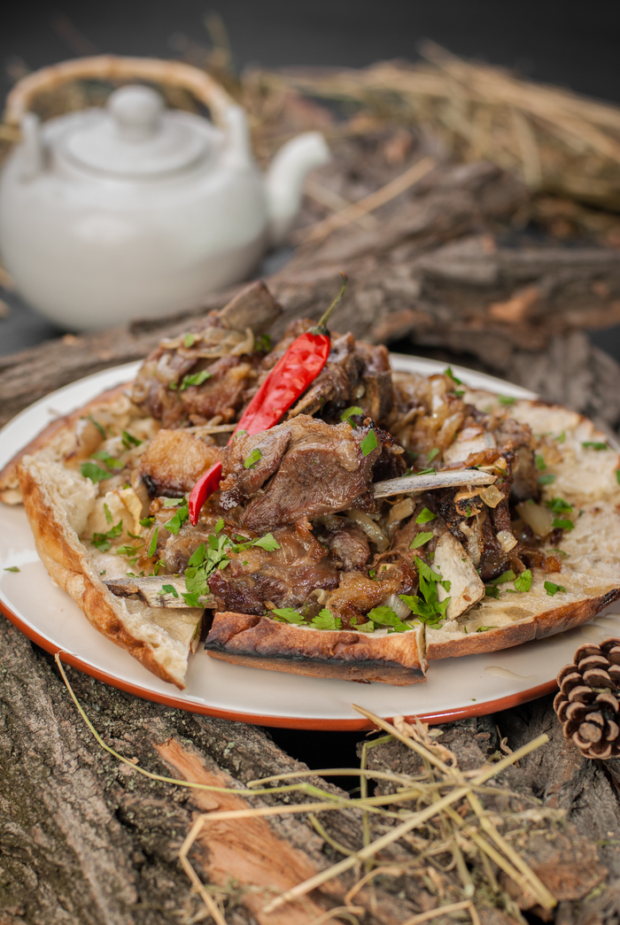 - Подавать такое классно на разрезанном кусками шоти или на узбекской лепешке, которую заранее можно подогреть. Я на знаю ,как это делать правильно и просто кладу на крышку горячего казана и накрываю полотенцем. Ребра выложить на хлеб, сверху добавить лук и нарезанную любимую зелень. Я больше всего люблю кинзу и петрушку. Запивать такое прекрасно холодной водкой. Но я сейчас не пью и выбрал зеленый чай. С ним получается не хуже, доложу я вам.