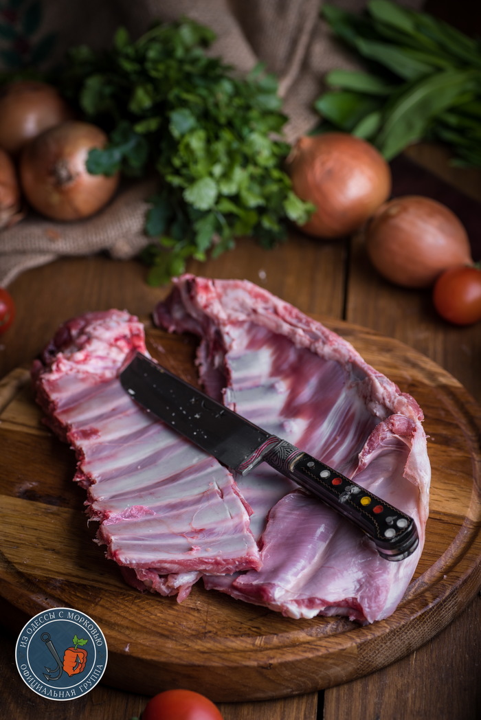- Сегодня их будет мало. Ребра можно брать и говяжьи и свиные. Я это блюдо обычно делаю с бараньими или говяжьими. Свиные для меня слишком жирные.