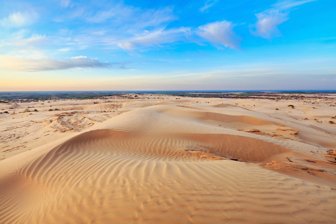 В справочниках указывают высоту бархана примерно от 12 до 25 метров над степью. История появления этой пустыни простая и печальная: местные овцы усердно выщипывали растительность, удерживавшую верхний слой почвы, и оголили песок, который начал собираться в дюны на ветру.