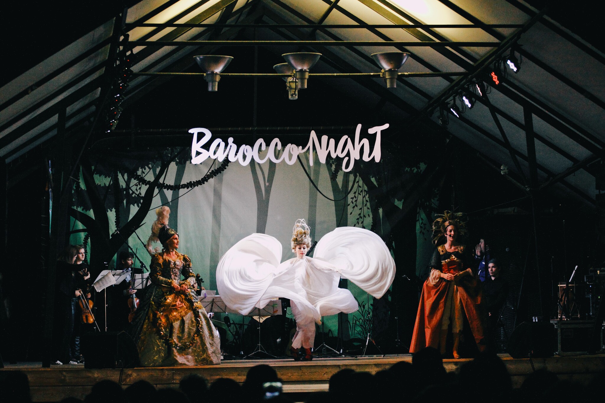 Концерт "Ночь Барокко" в Аптекарском огороде с костюмами художника и дизайнера Саши Фроловой, созданными для её перфоманса "Мария Антуанетта".