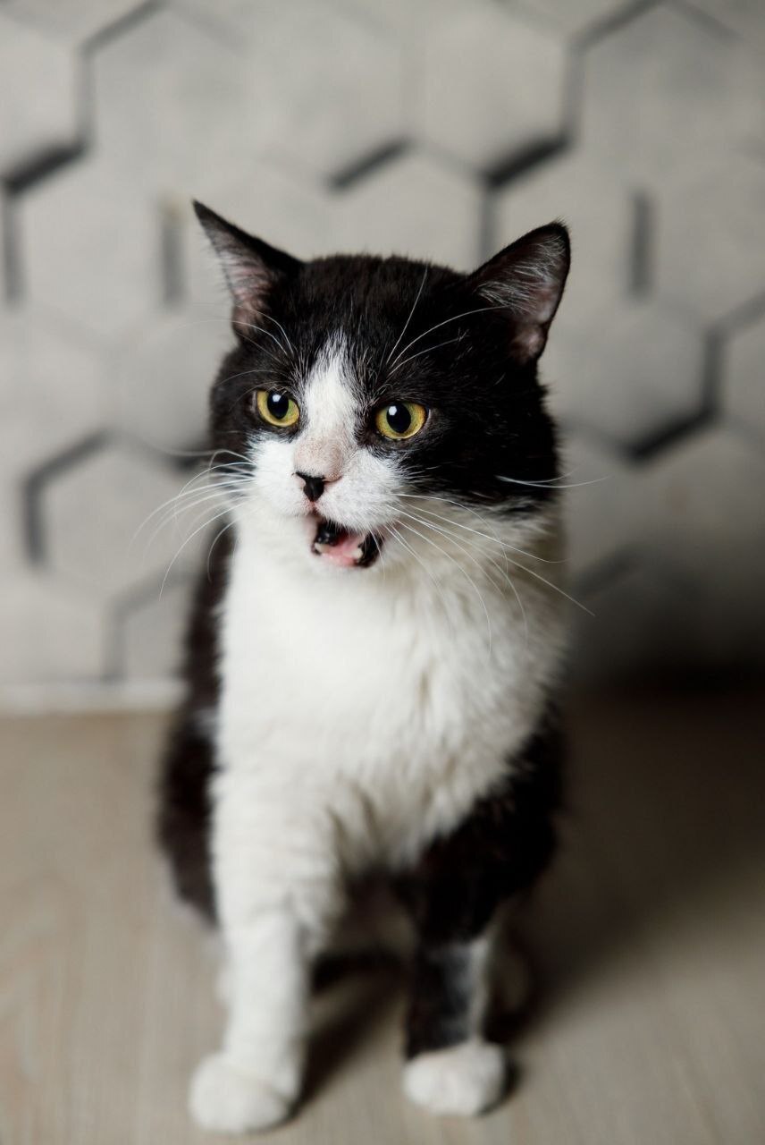 Каждый раз когда котоняня открывала его клетку, он начинал рассказывать как соскучился и разные другие свои кошачьи новости. Сейчас он уже разгуливает по комнате с другими котиками, но по-прежнему остался всё таким же общительным говоруном.