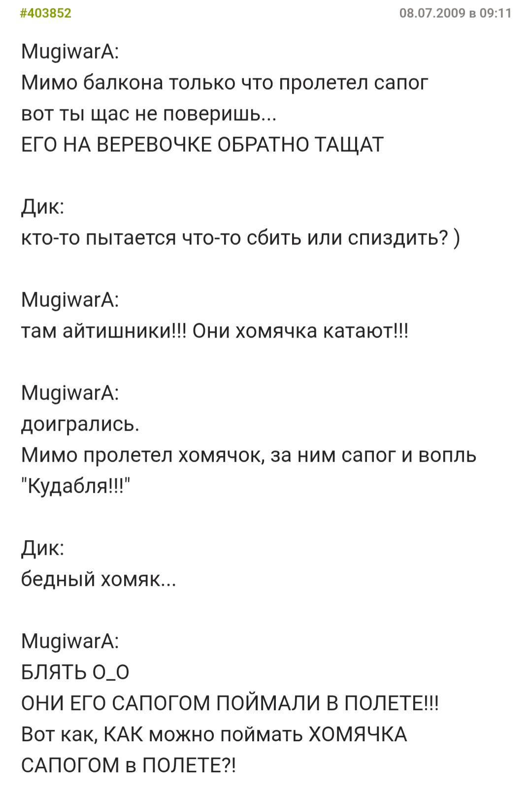 Решил обогатиться культурно и прочитать лучшее из архива баша, по странице на год. Хз почему именно это, но меня просто вынесло: