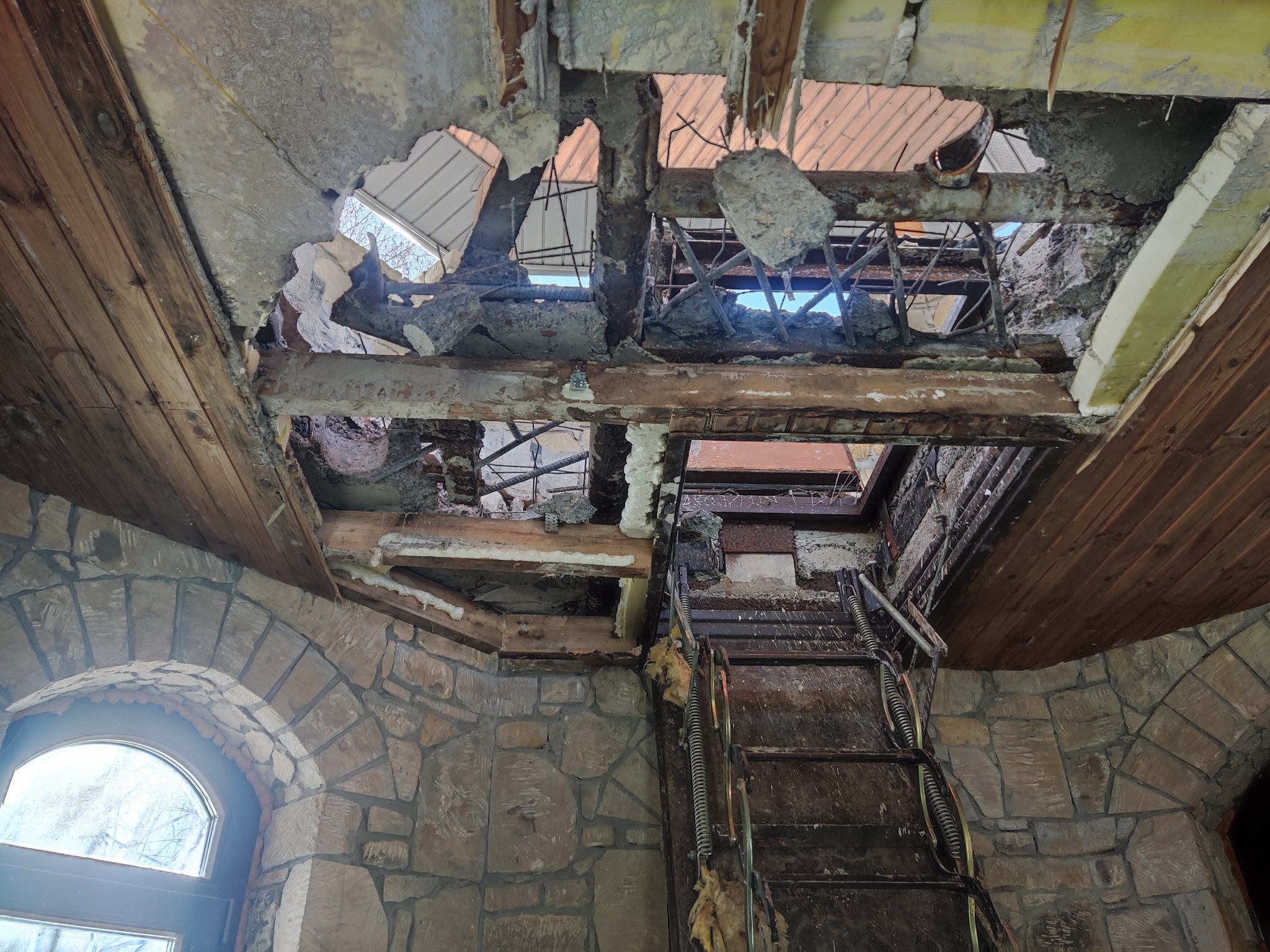 Прорезали проёмы под винтовую лестницу. До открытия 74 дня.