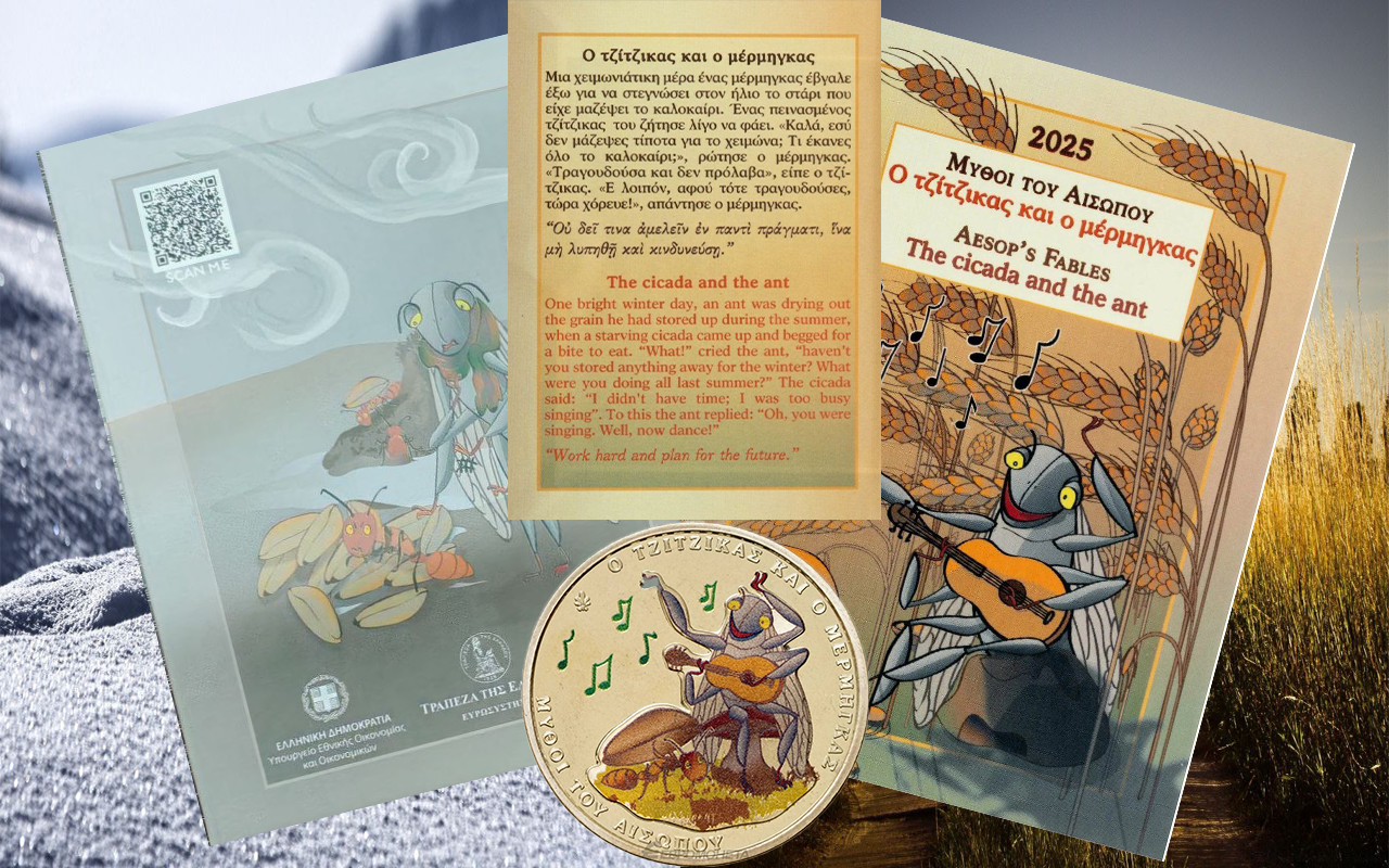30 сентября 2025 года вышла в свет монета номиналом 1.5 евро посвященную басне Эзопа «Цикада и муравей».