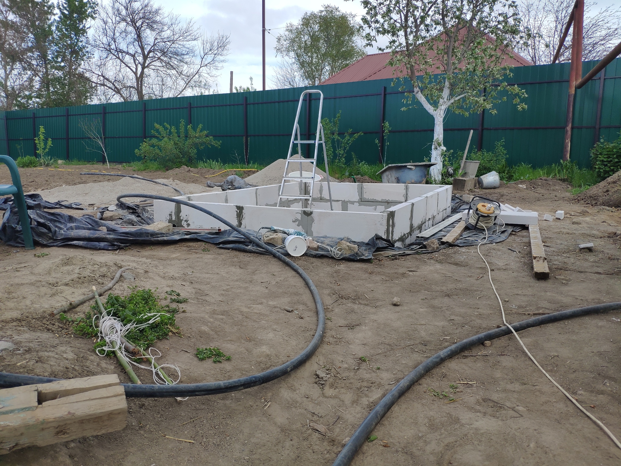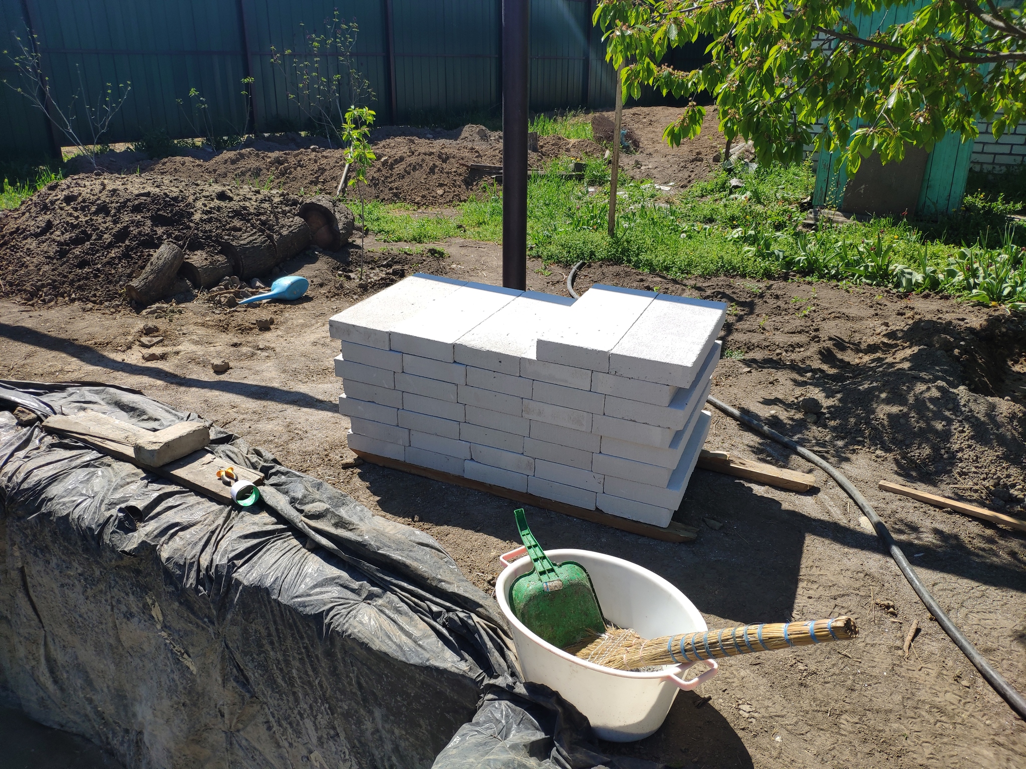Пора заняться опалубкой. Ламинированная фанера стоит заоблачно. В аренду сдают километрах в 200. Есть газобетон, пойдет!
