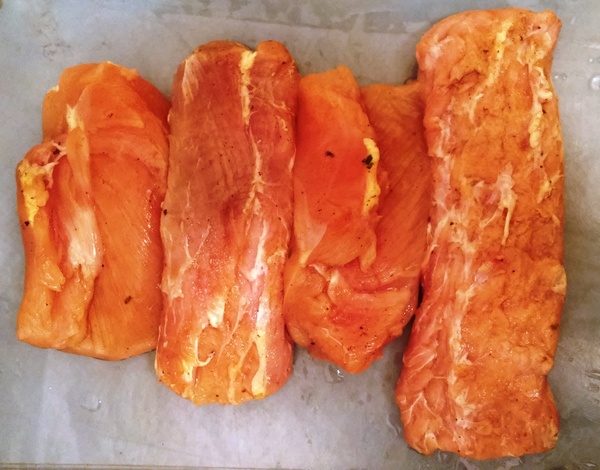 На рынке был куплен небольшой кусок говяжьей вырезки (если есть возможность, берите телятину), и два куриных филе. Сразу скажу, бастурма из курицы по вкусу получается никакая, поэтому делать ее я вам не советую. Хотя из свинины бастурму не готовят, но если с говядиной проблемы, вы можете попробовать приготовить из свинины, вырезка обязательно должна быть нежирная.