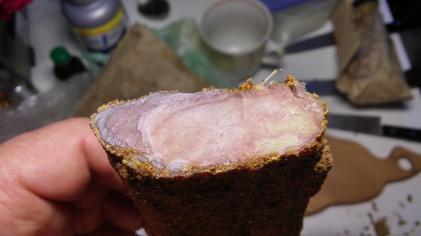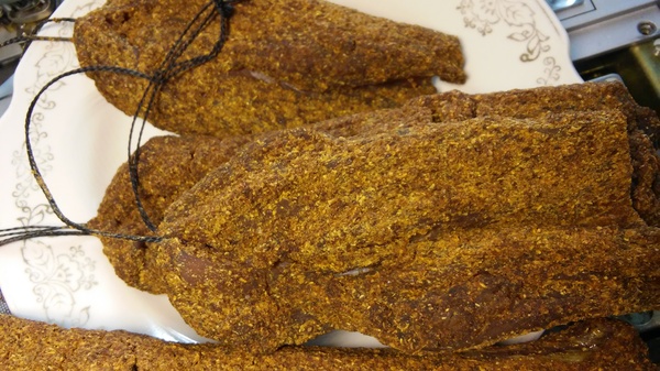 Должен сказать, что я результатом доволен. Вкус получился отменный, никакой химии, соль практически не ощущалась. Правда, обмазка, как для меня, получилась очень острой, хотя я просил сделать мне не острую, но, во первых, через неделю острота ушла, во вторых обмазку перед употребление можно счищать.