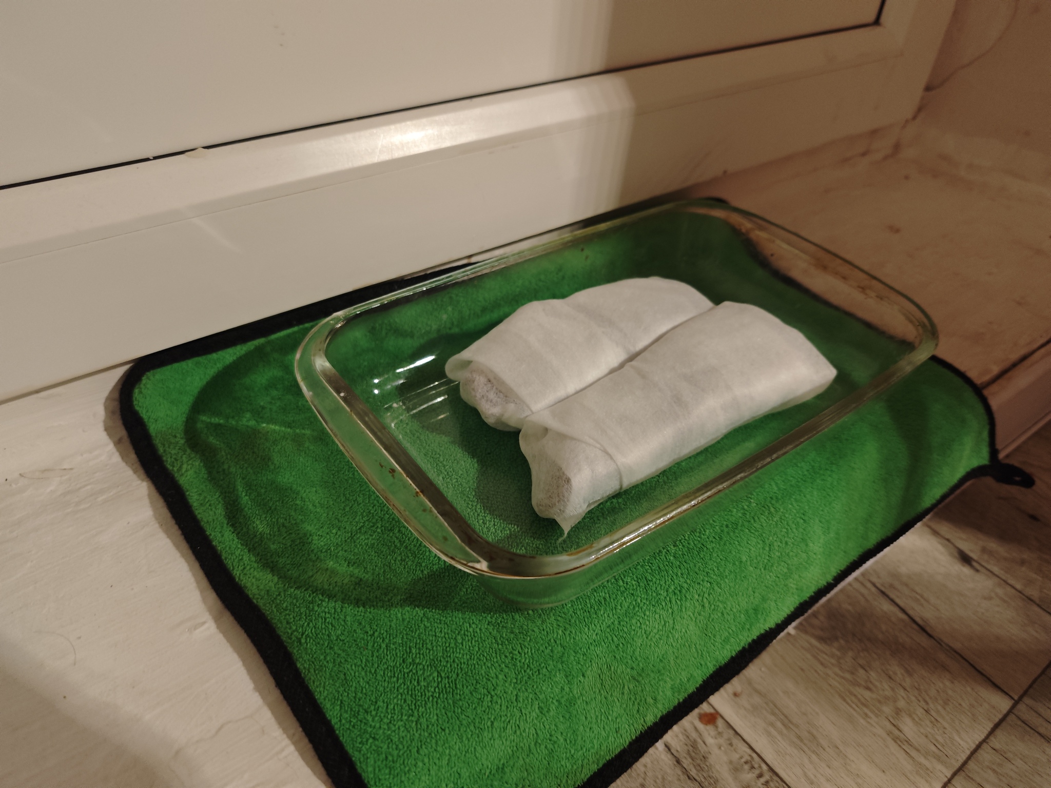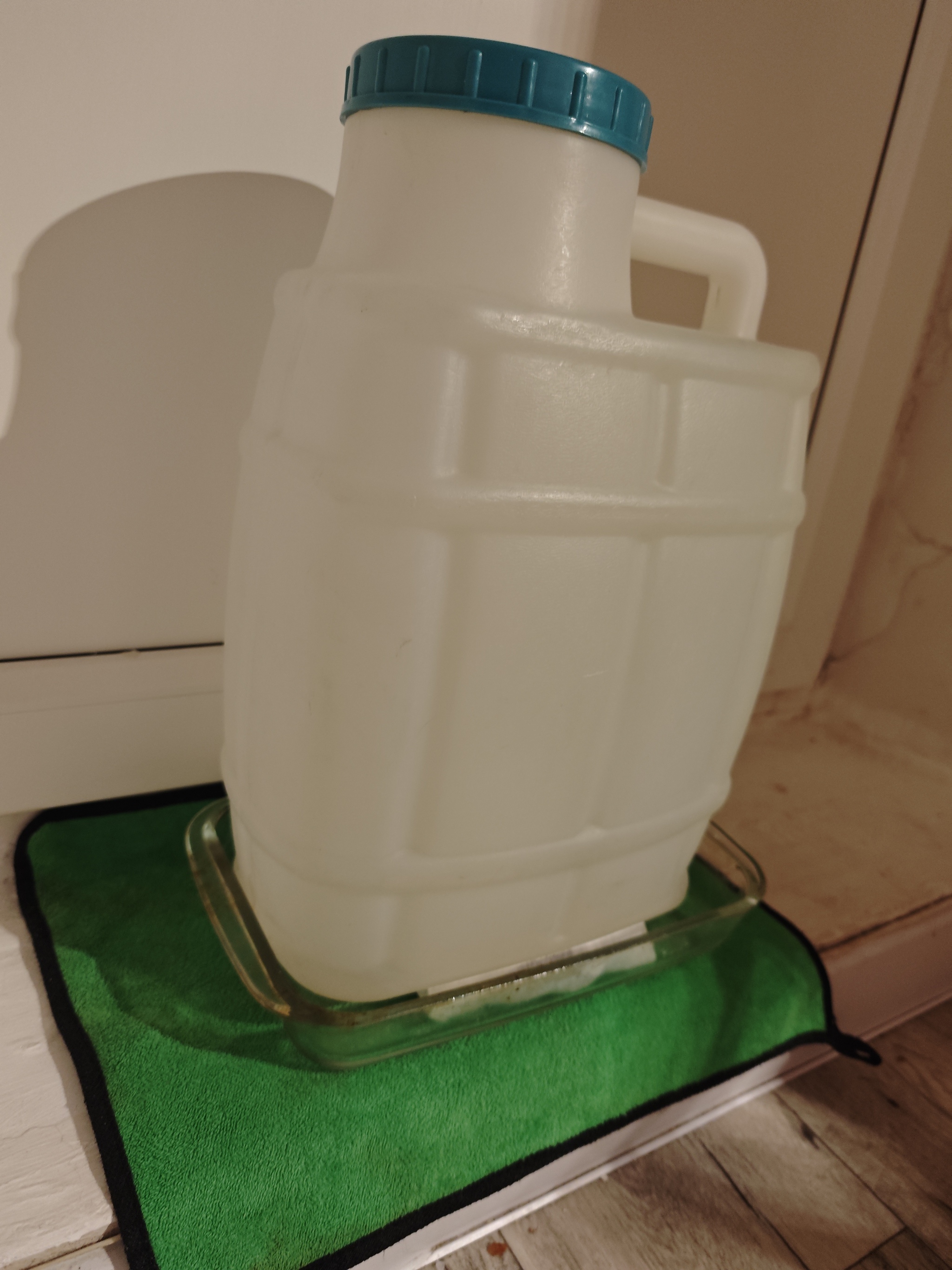 Затем обернув салфетками поставил груз, в моем случае канистра с водой 10 л. Под прессом продержал так же 3 суток, каждый день меняя салфетки, где скапливалась врага.